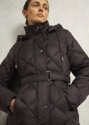 Blending style and practicality, the generously padded Dita puffer is just what your cold-weather wardrobe needs. Ribbed side detailing combined with slimmer panels around the waist create a feminine silhouette you'll love, while the faux fur-trimmed hood, fleece-lined pockets and ribbed cuffs keep you shielded from the elements. Made from shower resistant fabric. Recycled polyester lining.