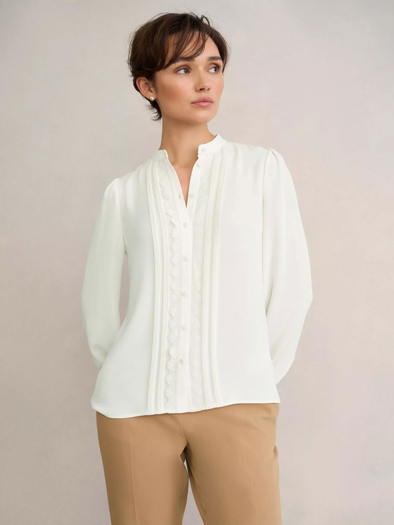 Dominica Lace Trim Shirt, Ivory