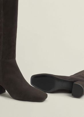 Refreshed this season in luxurious suede, the Georgie ankle boot imbues longevity into your work-to-weekend edit. 'H'-mark insignia embossed tab. Side zip fastening.