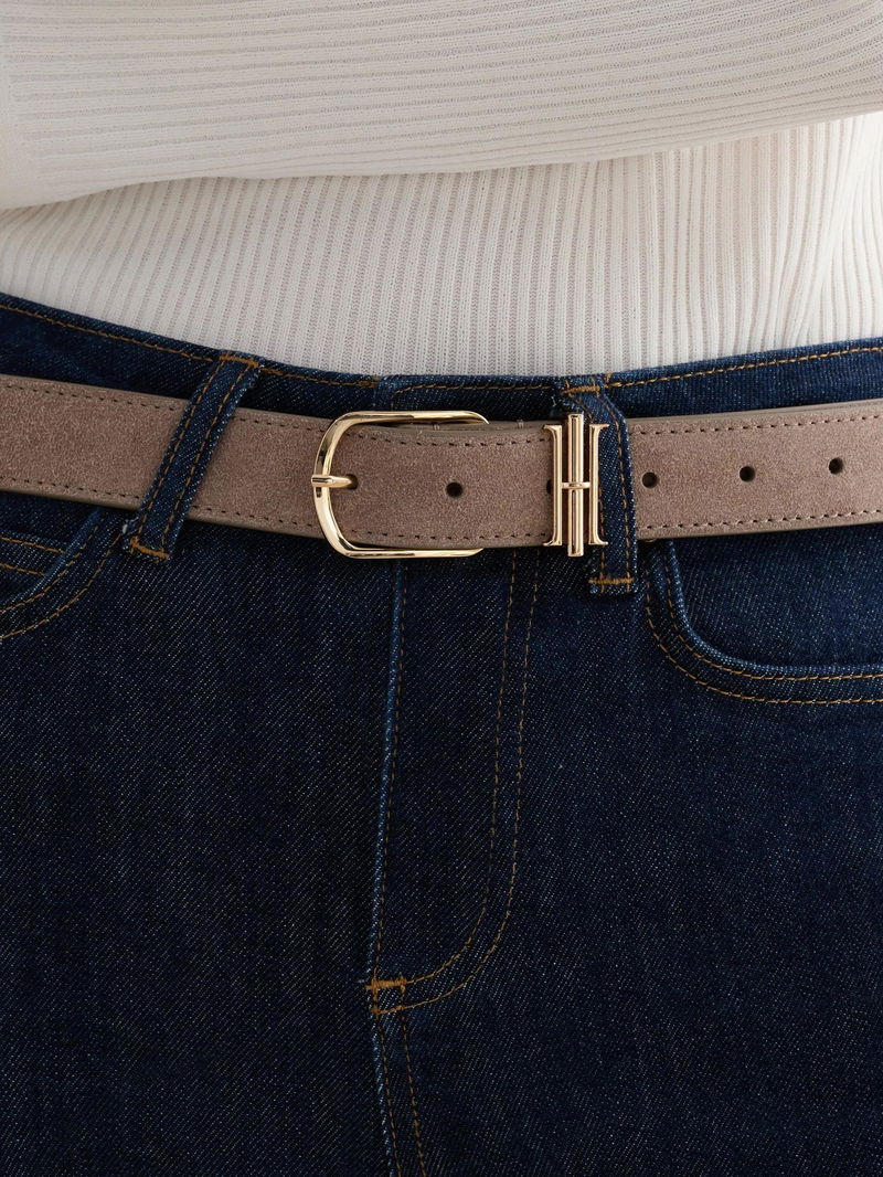 Hallie Insignia Pure Suede Belt, Mushroom, Mushroom