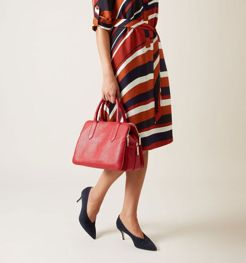 Your new daily companion. The perfect size for all your everyday essentials, our Helmsley bag has three handy compartments for storage. There’s also a choice of using the top handles, or the removable cross-body strap. It’s available in timeless navy or vibrant red. Crafted from buttery soft leather.