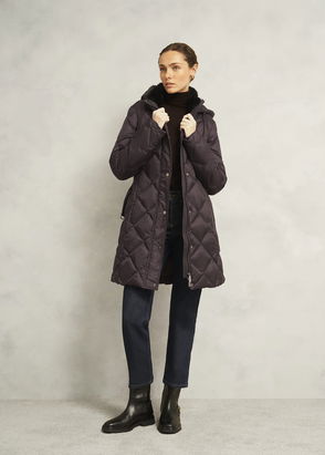 Clean and contemporary. When temperatures drop, envelope yourself in style with the Indira puffer coat.