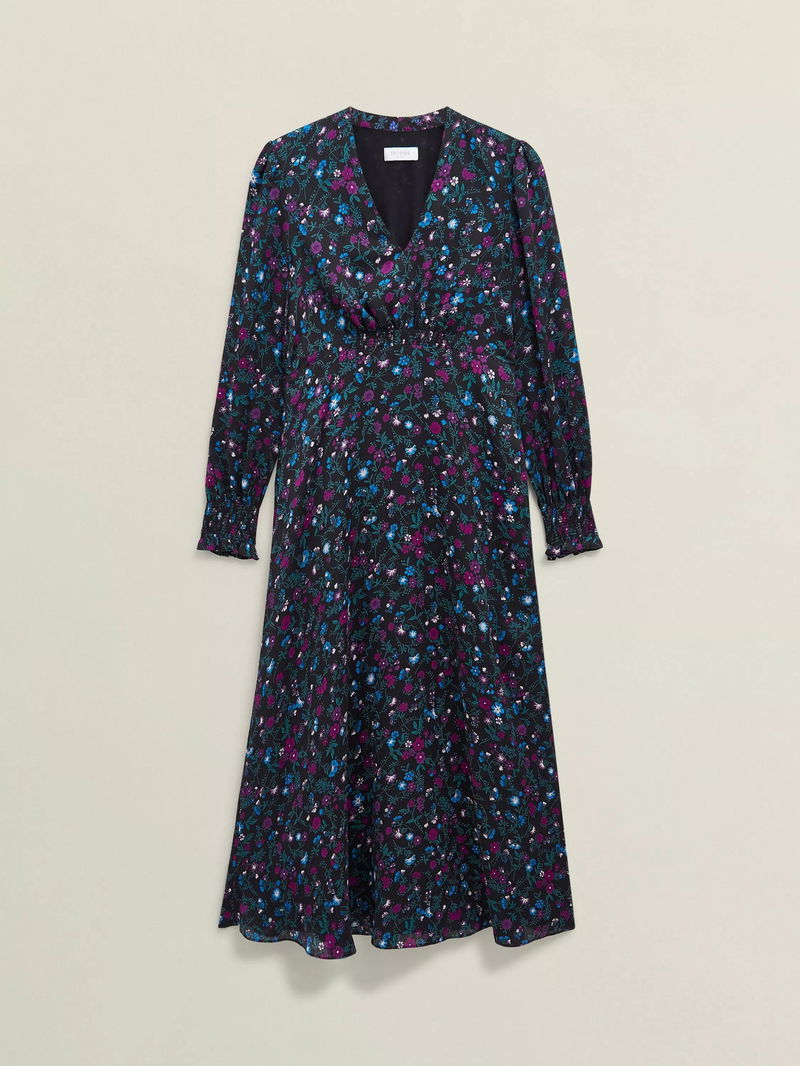 Isabella Floral Midi Dress, Black/Multi
