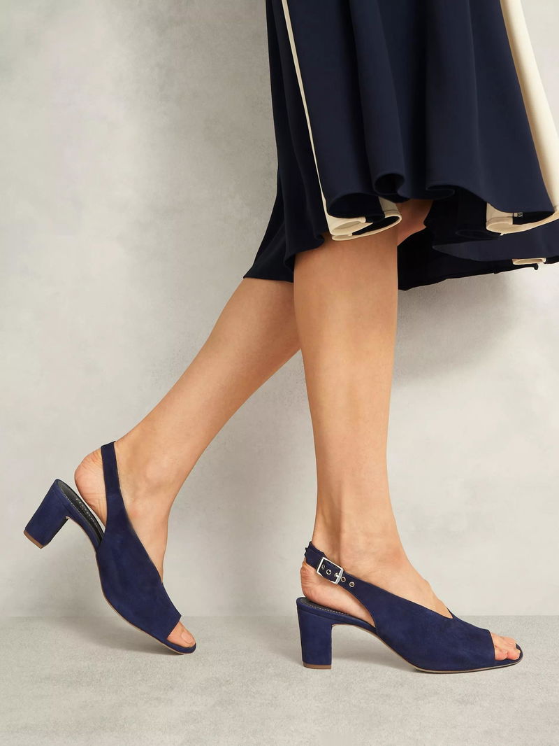 These suede Kali sandals are a pair you'll turn to again and again for weddings, special occasions and elegant events alike. The slingback design has an adjustable strap, a block heel and peep toes.
