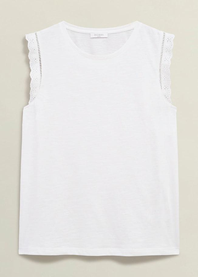 Your newest sun-loving layer, the Leia top nods to trending broderie with feminine trims.