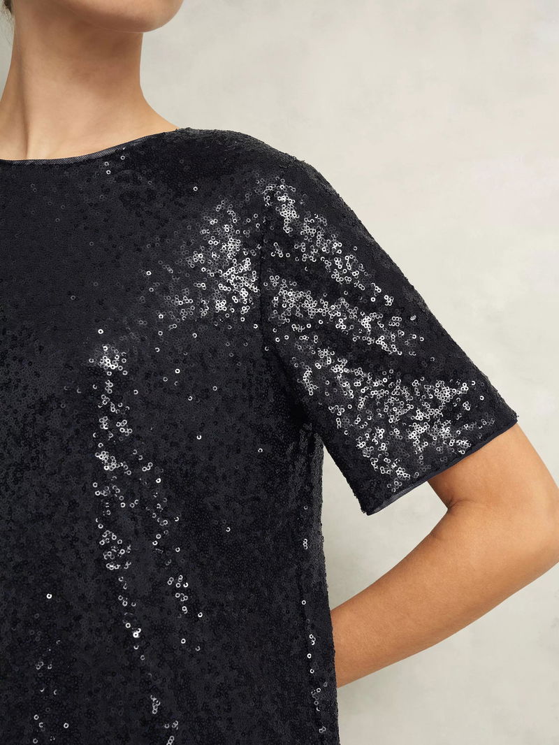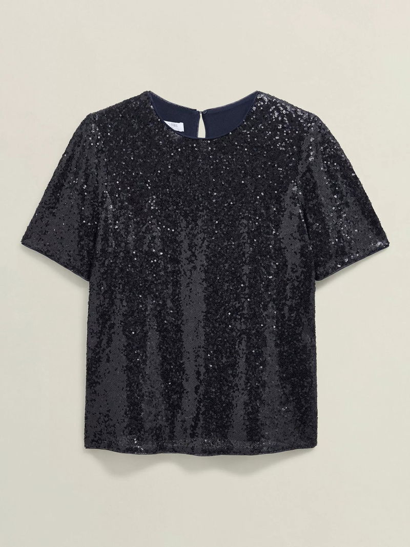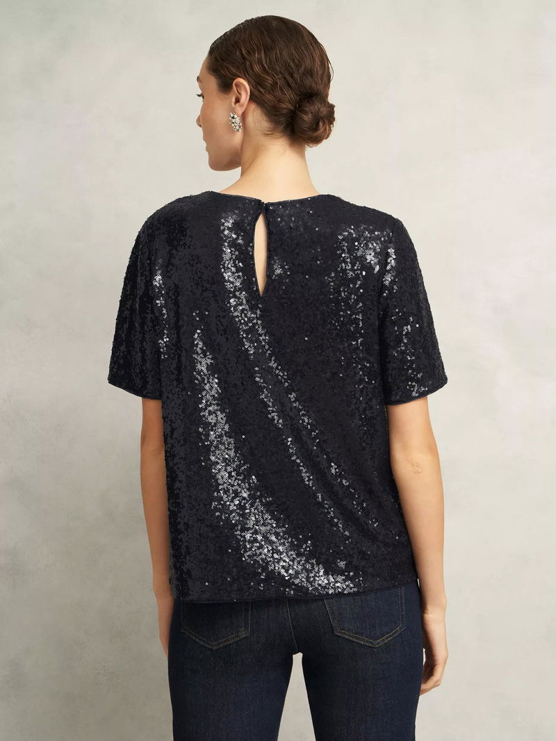 Lilibet Short Sleeve Sequin Top, Navy