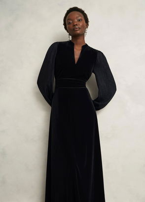 Maximum impact, minimum effort. Lean into opulence with the Marissa dress, where luxurious black velvet marries low-key lustre.