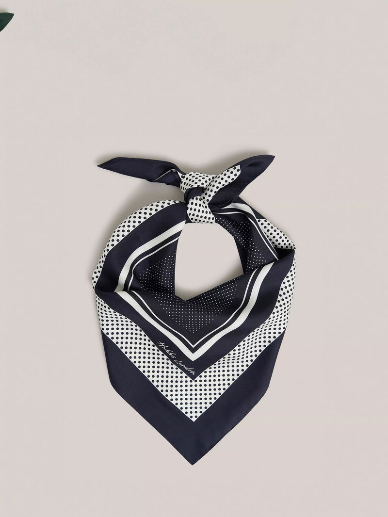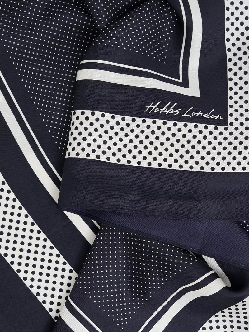 Milena Polka Dot Pure Silk Scarf, Navy/Ivory