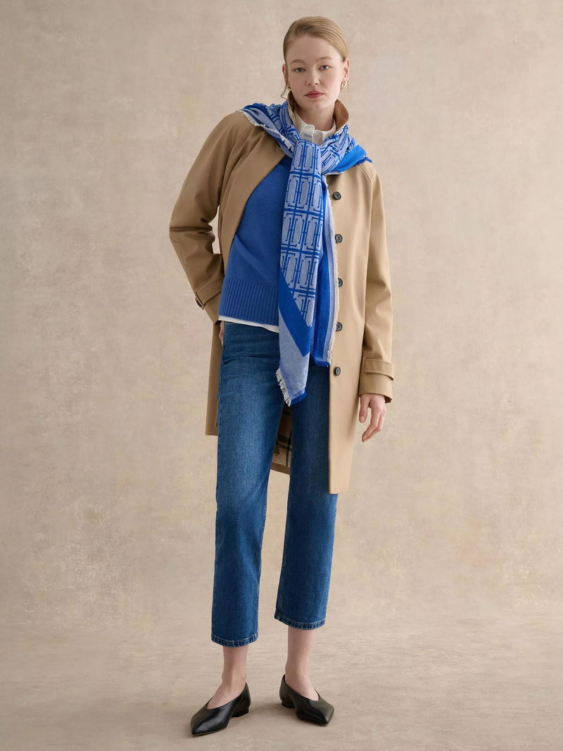 Mora Insignia Print Scarf, Blue/Ivory