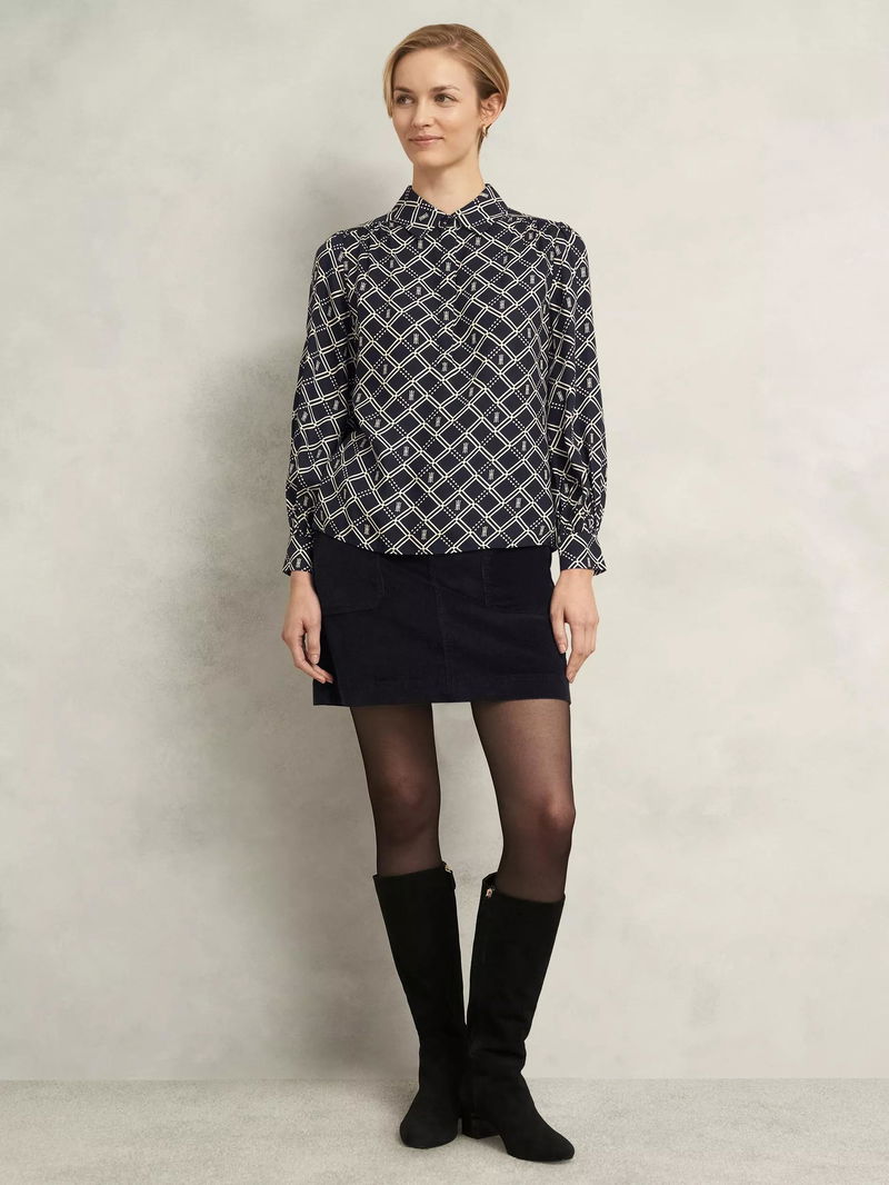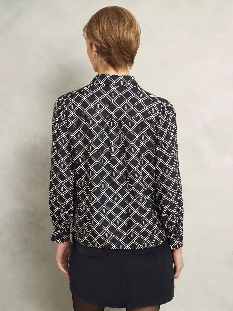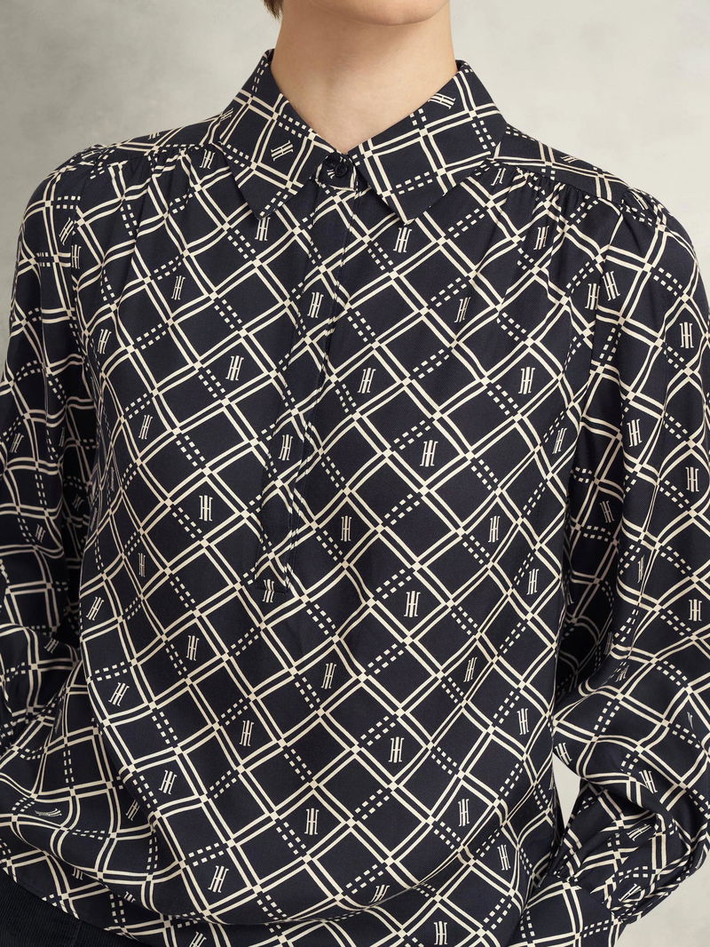 Paulina Geometric Top, Navy/Cream