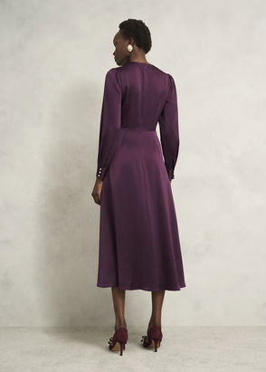 Where easy elegance meets understated style, the Peony dress is expertly designed to fit and flatter. Desirable drape, button-through front and waist belt. Three-quarter length sleeves and a V neck with mandarin collar.
