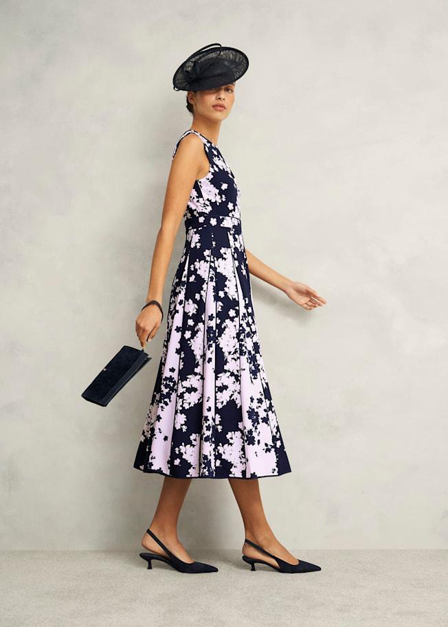 Anchored by femininity, the Angelica dress gives a masterclass in entrance-making style with reverse florals and defined pleats.