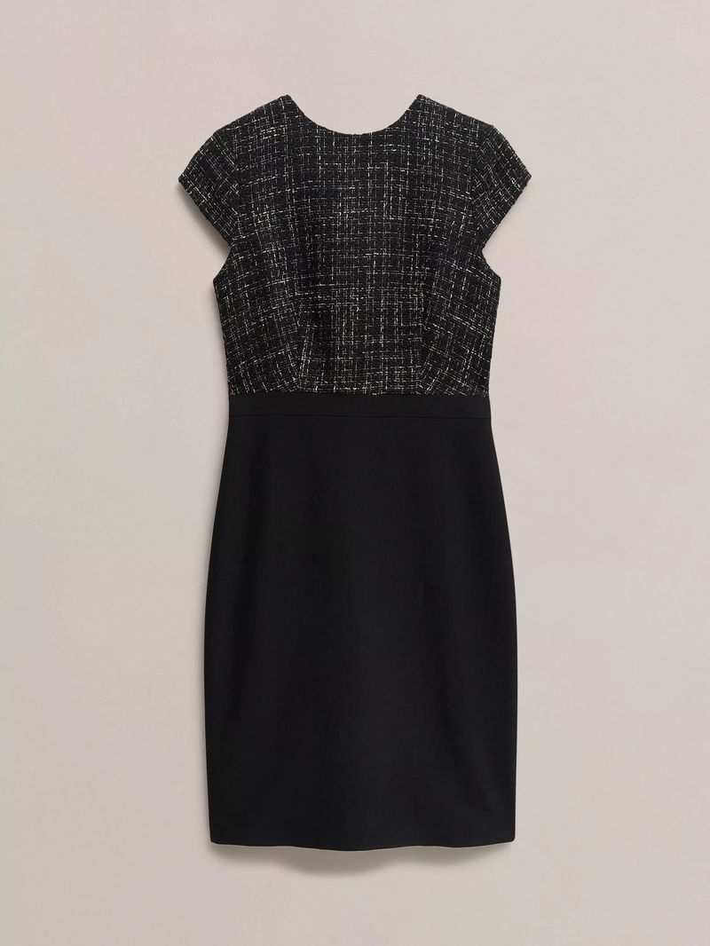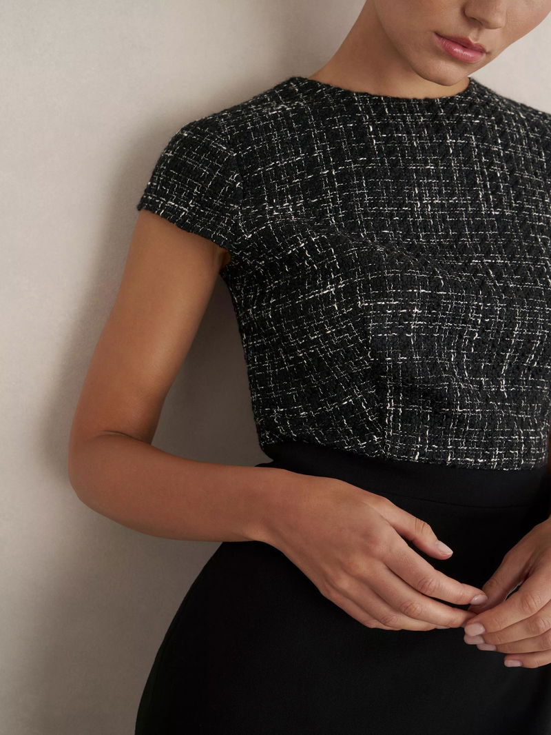 Tweed tailoring is modernised this season with the Esme dress' monochrome palette and timeless, shift silhouette.