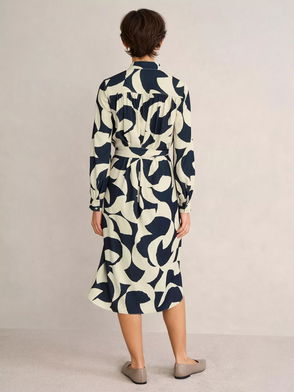 Set in a simple, A-line shape with a frill hem, this knee length dress from Hobbs is made using a synthetic fabric. With a fuss-free round neckline and three quarter length sleeves, this style showcases an intriguing, abstract print.