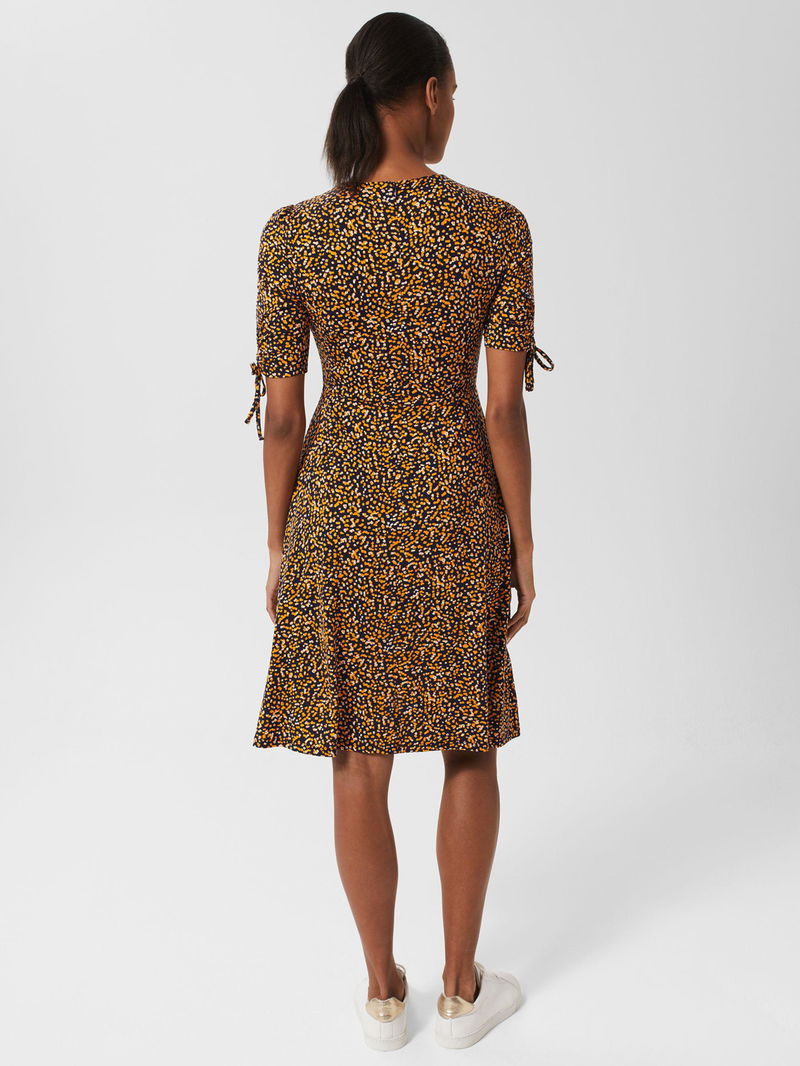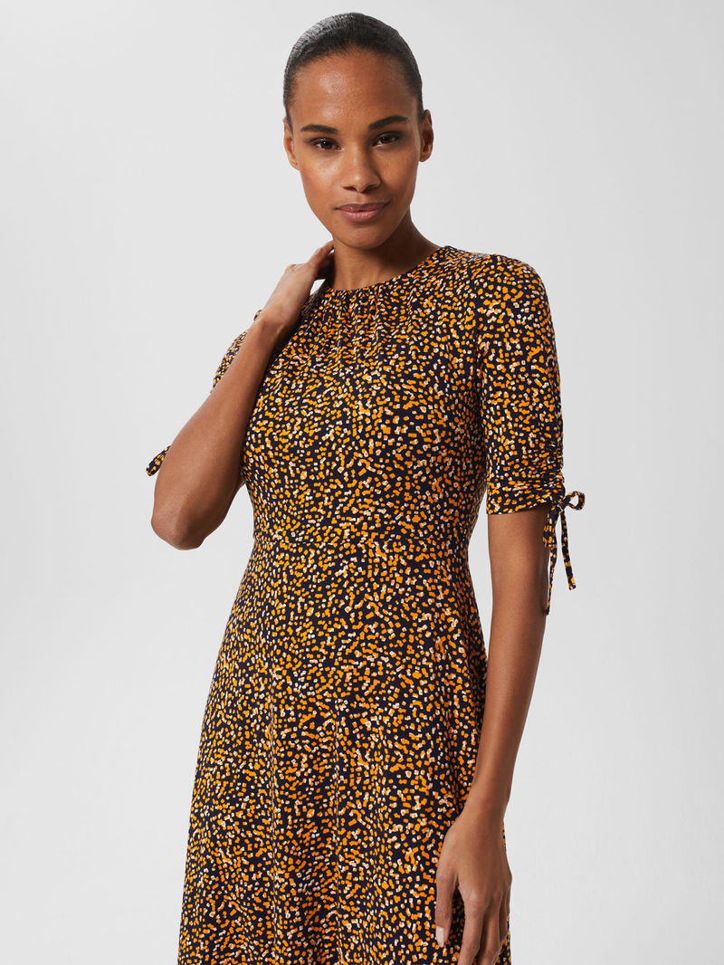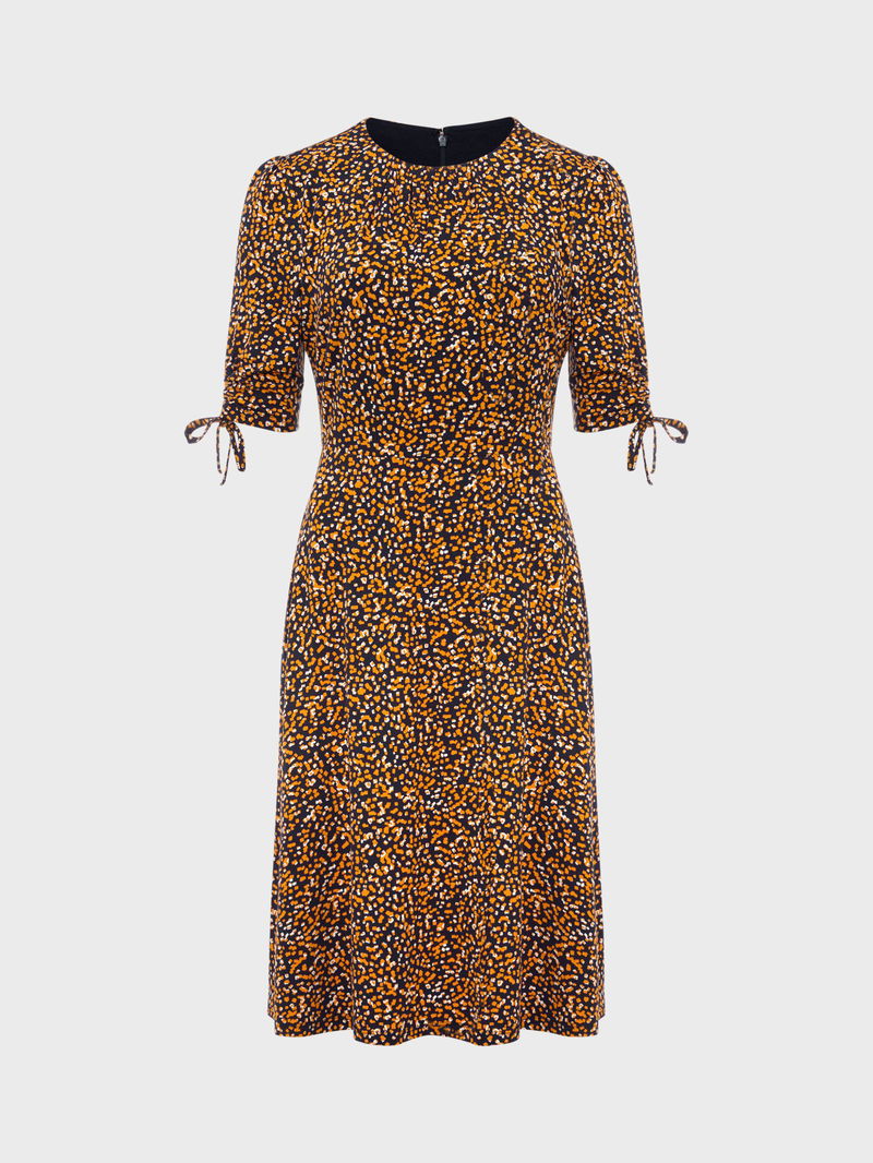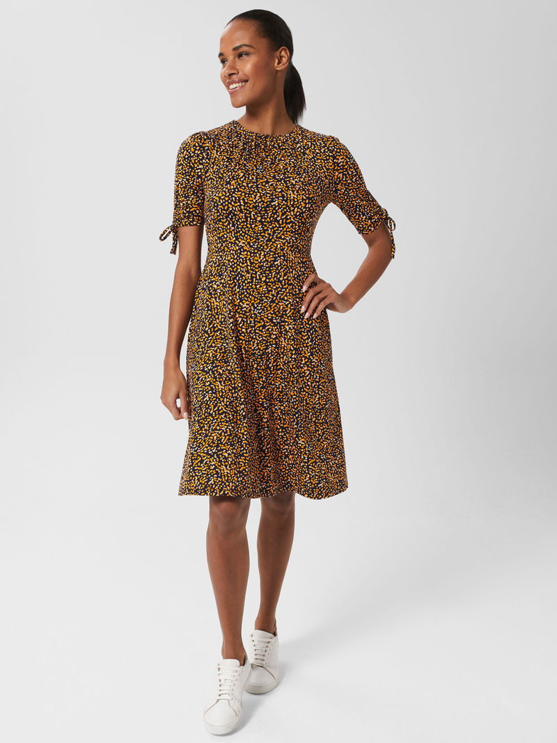 In a slightly flared shape and finishing to a classic knee length, this dress from Hobbs is made from a durable synthetic fabric with fuss-free round neckline and modern elbow-length sleeves.