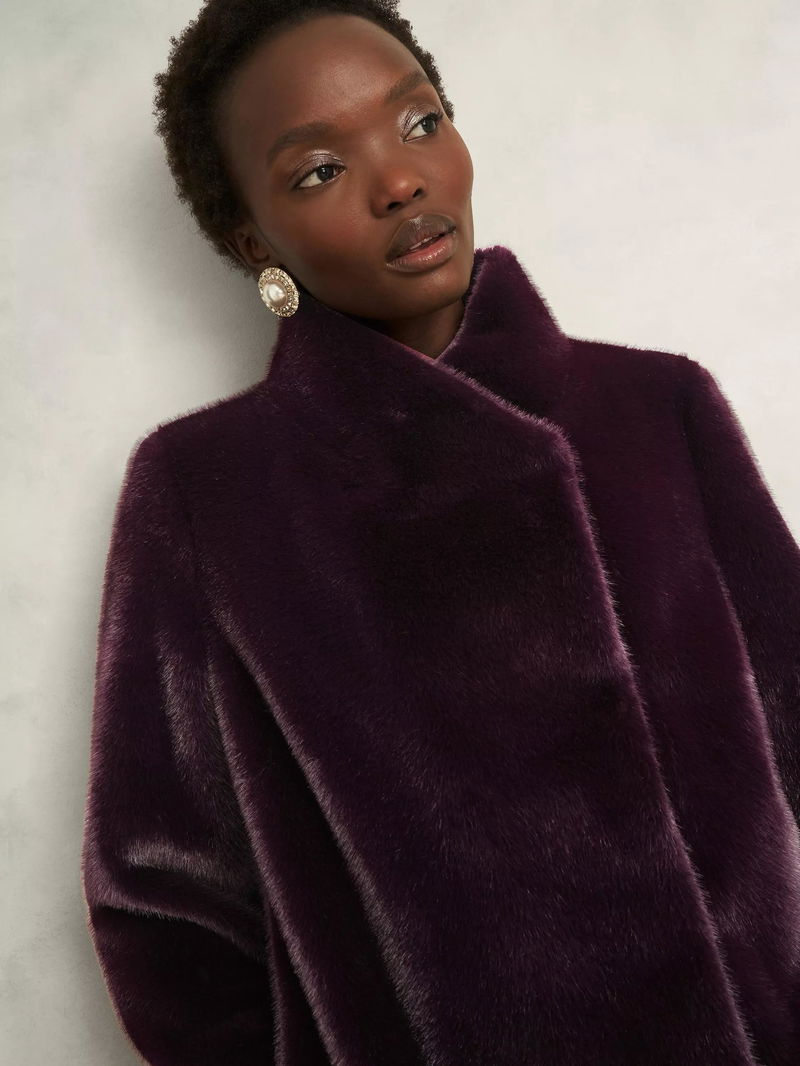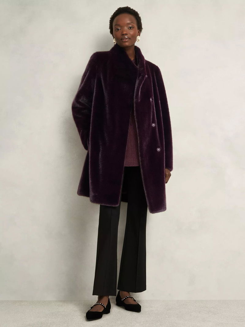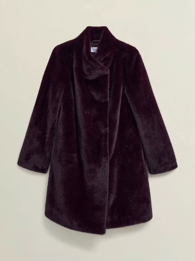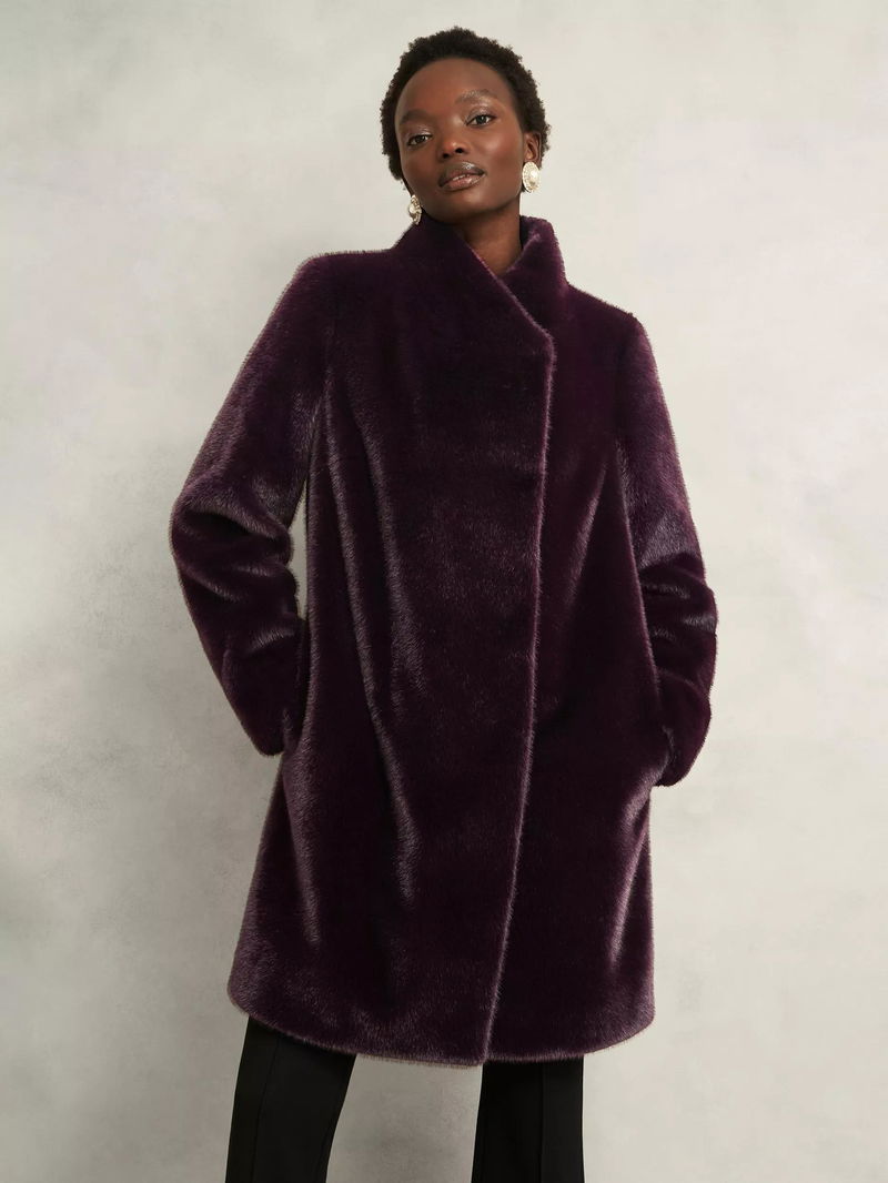 Hobbs petite regular-cut coat. The high neck and soft faux fur keep you warm while the long sleeves offer comfort. An easy button fastening lets you step out confidently, whatever your plans.