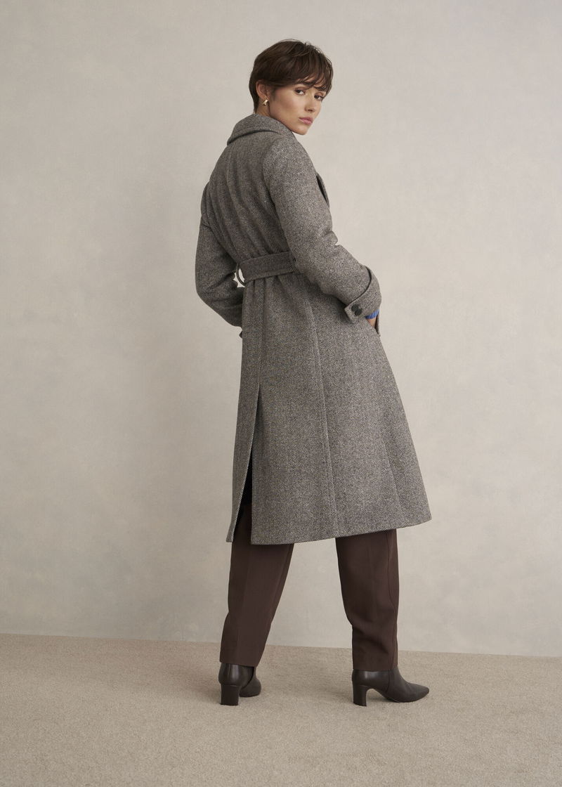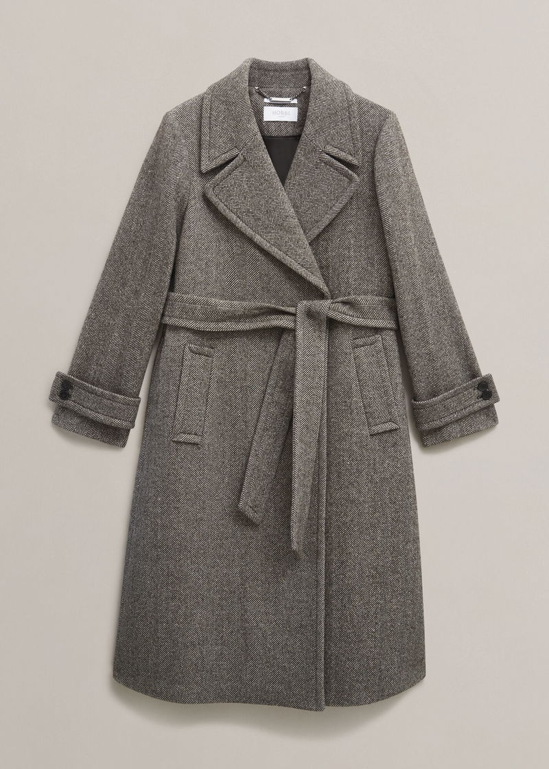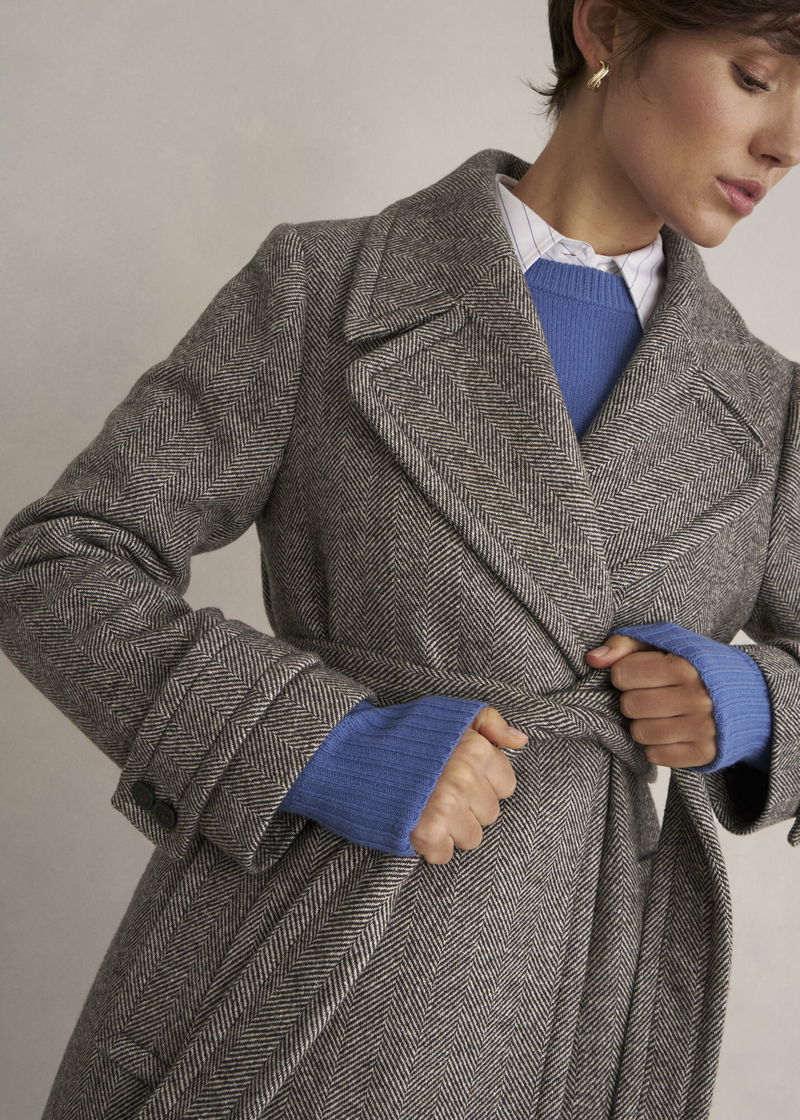 If you liked our Manon coat, youll love our Prisha silhouette. Our newest wool-blend layer with a contemporary mid-length, tap into timeless style with a modern herringbone weave.