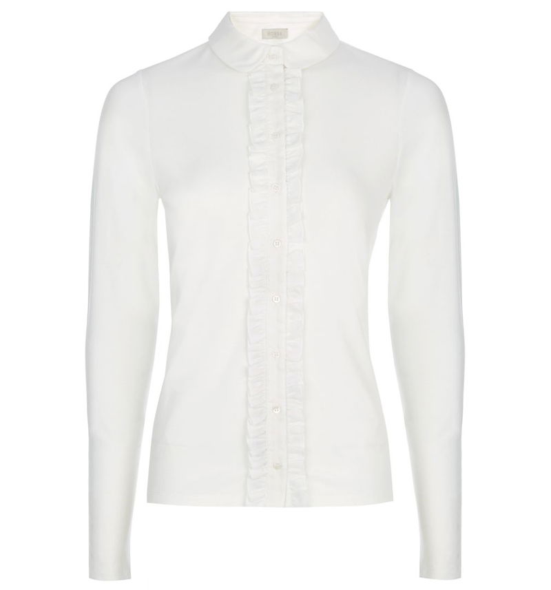 Hobbs have given the iconic white shirt a makeover. Ruffle trims and a Peter Pan collar make this our contemporary take on a timeless style. Made from soft stretch jersey. Model is 175cm/5’9’’ and is wearing a size UK S.