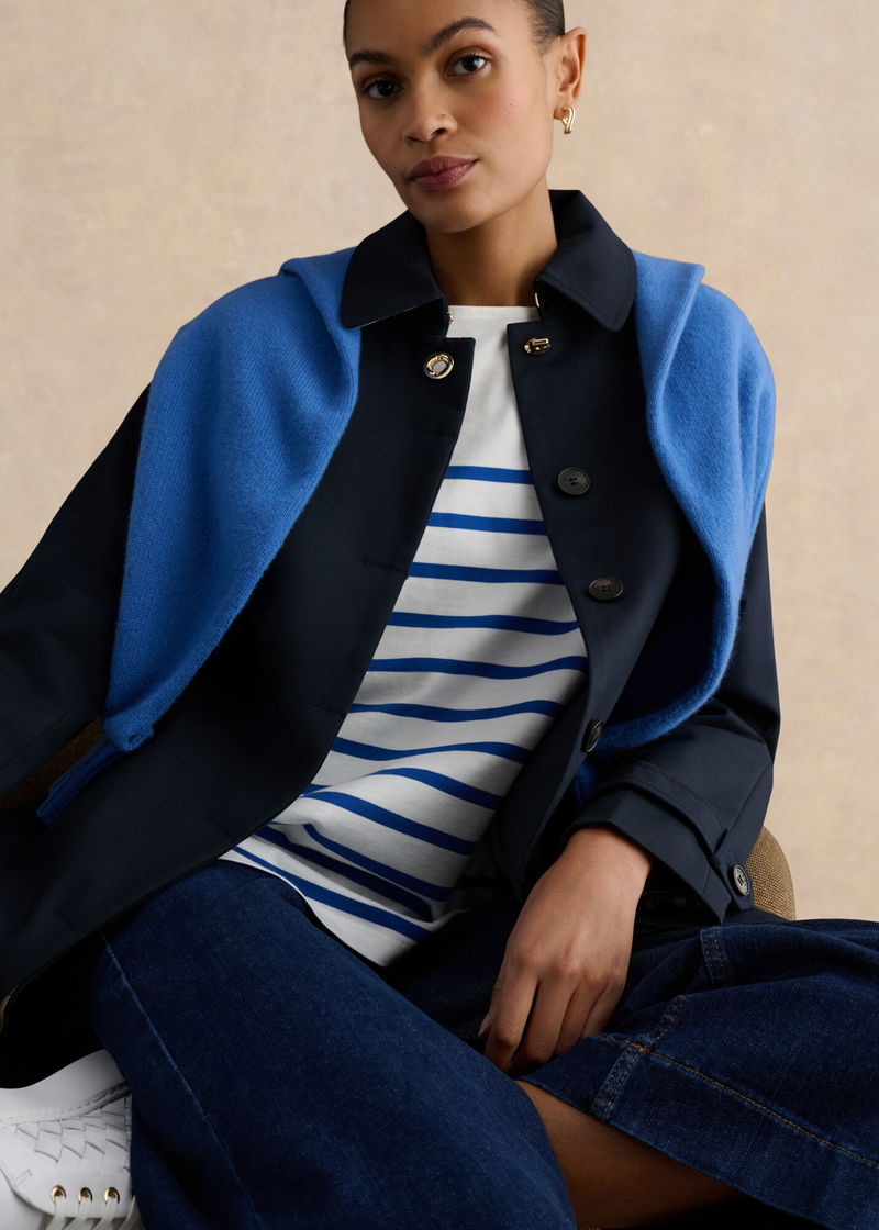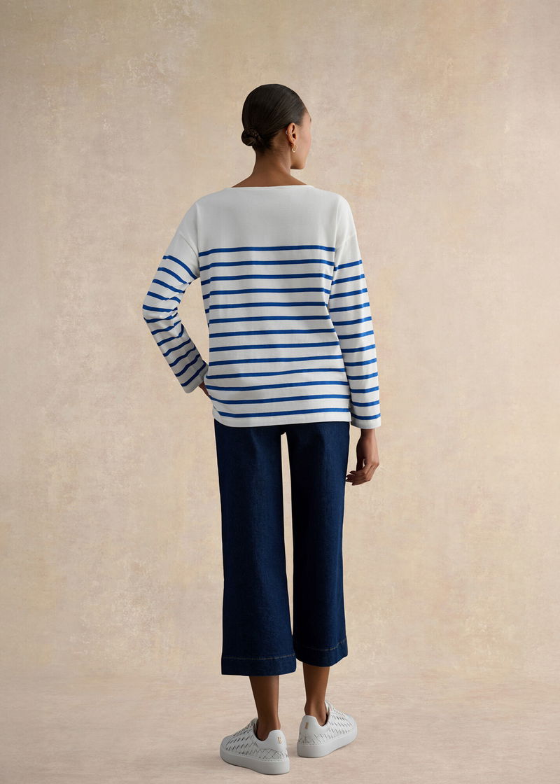 Easy under-layers create the foundations of every hard-working wardrobe. And cast in our new, blue, stripe, the Sian top exudes versatility.