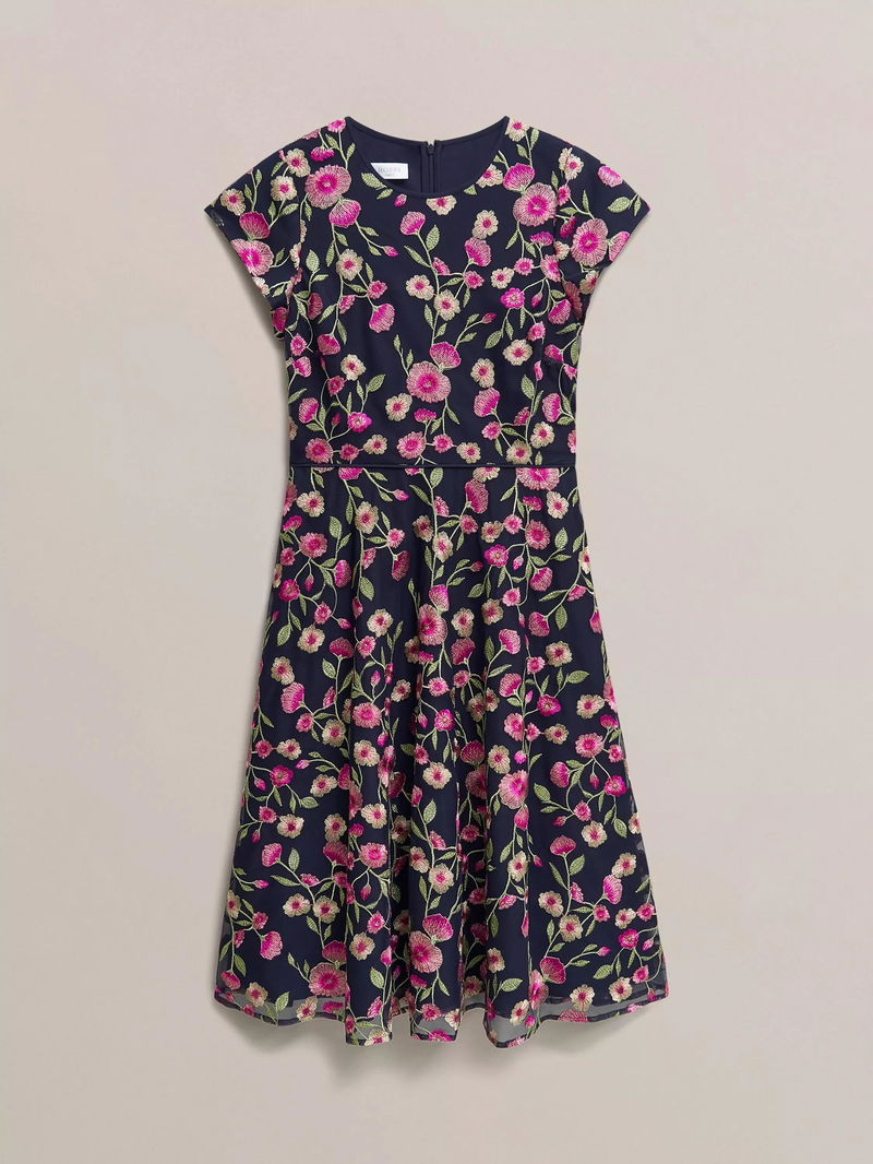 Embroidered elegance. The Tia dress is perfect for weddings, garden parties and events alike.