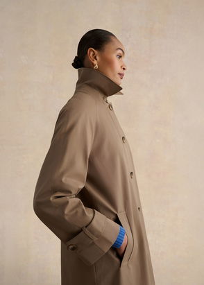 Impeccably tailored with a soft cotton blend for everyday comfort, this trench is designed for ease and practicality at work or beyond. Its timeless shape offers effortless polish with a twist of personality.