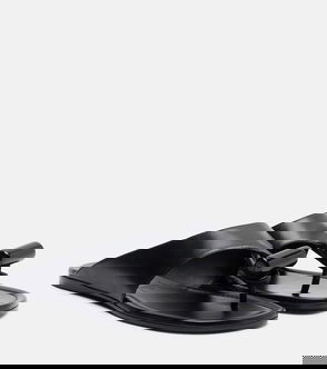 Grained leather sandals in black. · Open square toe· Padded straps at vamp· Partially elasticized slingback strap · Logo embossed at padded leather footbed·