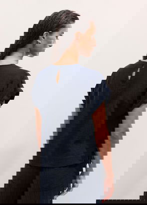 Polyester crepe shirt.· Spread collar· Button closure· Layered rolled cuffs · Shirttail hem.