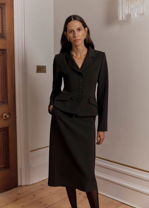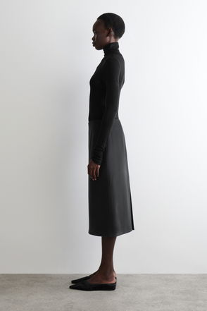 A form-fitting pencil skirt by BOSS Womenswear, crafted in Portuguese stretch fabric carrying a monochrome check. Designed with an uneven appearance achieved through the use of crepe yarns, this modern pencil skirt has a back vent for easy movement. An angled spin on the check is patched at the waistband for added interest.