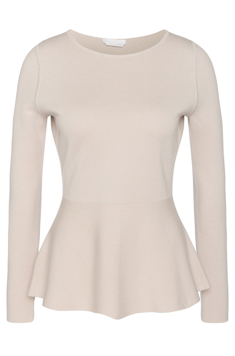 You will love this BOSS sweater in pure new wool for the exceptional softness and comfort of its finest merino quality. Its simple design is given a feminine touch by the peplum detail on the hem. Perfect paired with narrow-cut trousers or a pencil skirt.