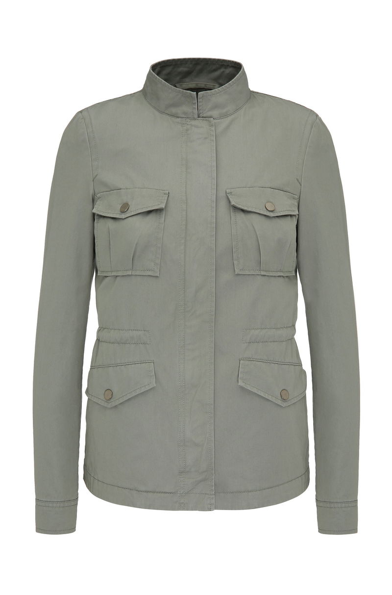 Cool for your wardrobe: this casually cut BOSS Orange field jacket in soft cotton. 4 large flap pockets contribute to its characteristic military design. An interior drawstring waistband ensures a feminine appearance. For casual streetwear styling, just pair this women's jacket with a chic print dress and trainers.
