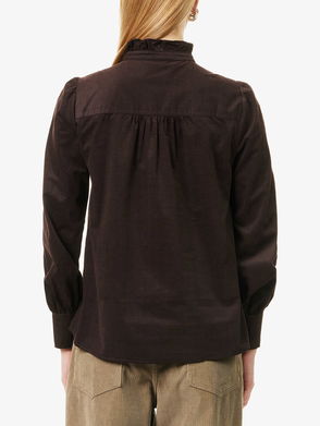 A striped blouse by BOSS Womenswear, cut to a long length with a loose fit. Crafted in a cotton-rich blend with added stretch, this versatile blouse features a point collar, double cuffs at the three-quarter-length sleeves, and a half placket with horizontal stripes patched at the left chest. Side slits and a curved hem complete the laid-back look of this casual blouse.