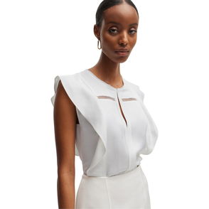 A feminine take on the sleeveless blouse by BOSS Womenswear, crafted in cotton. Cut to an easy-wear straight fit, this top features a rounded neckline and ruched armholes with ribbon ties at the shoulder, which can be left loose or tied in a bow. Team this pretty piece with cropped leather trousers and embellished loafers for a touch of daytime glamour.