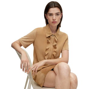 A feminine piece with three-quarter length sleeves and a regular fit by BOSS Orange Womenswear. With a touch of stretch for easy movement, this fluid, streamlined dress features a rich structure in the fabric and a pretty bow detail at the back neck, looped through metallic eyelets. Couple it with modern platform sandals for effortless glamour.