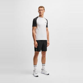 A versatile top by HUGO Womenswear, designed with a stand collar and a logo at the left sleeve. Inspired by the trend for cycling clothing, this top is created with a ribbed structure and a sporty zip at the neckline. Generous stretch in the jersey delivers a modern form-fitting silhouette to this directional layer.