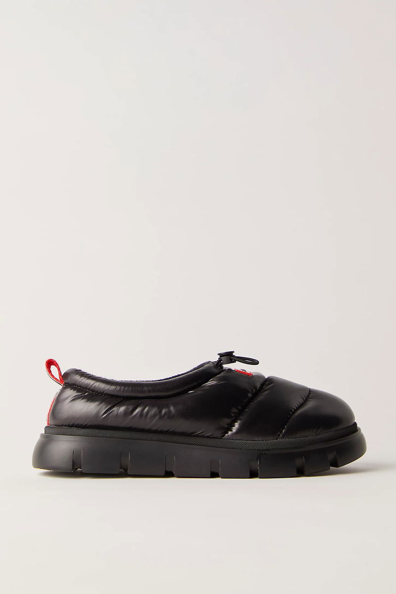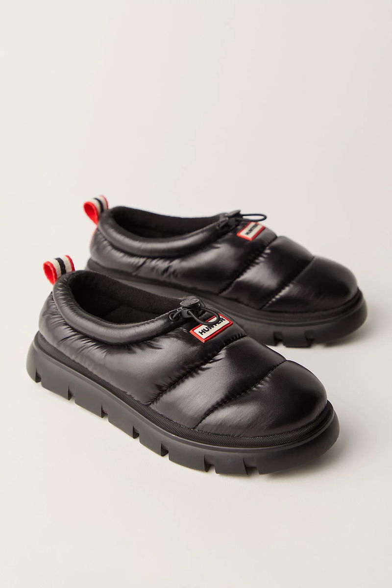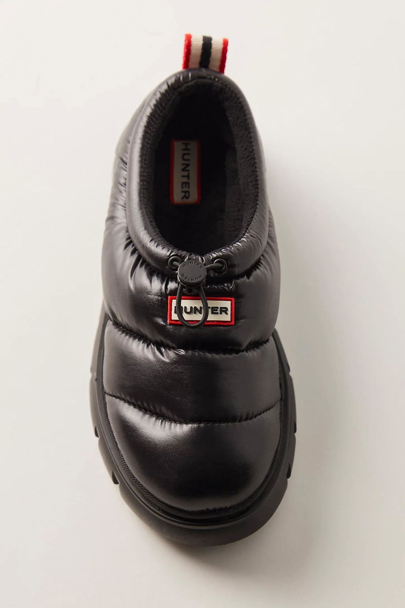 An elevated take on a casual, comfortable shoe, these clogs from Hunter feature puffy, quilted uppers, a flexible bungee cord for a secure, adjustable fit, and a water-resistant finish to keep you dry and cozy.