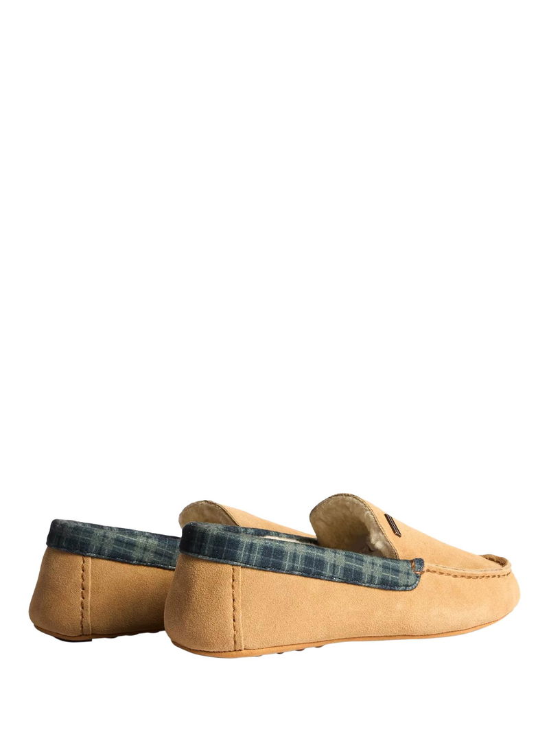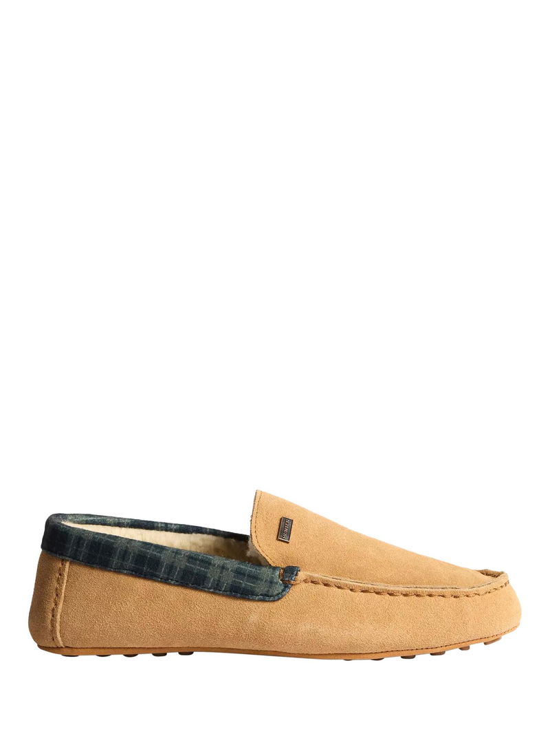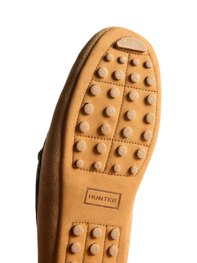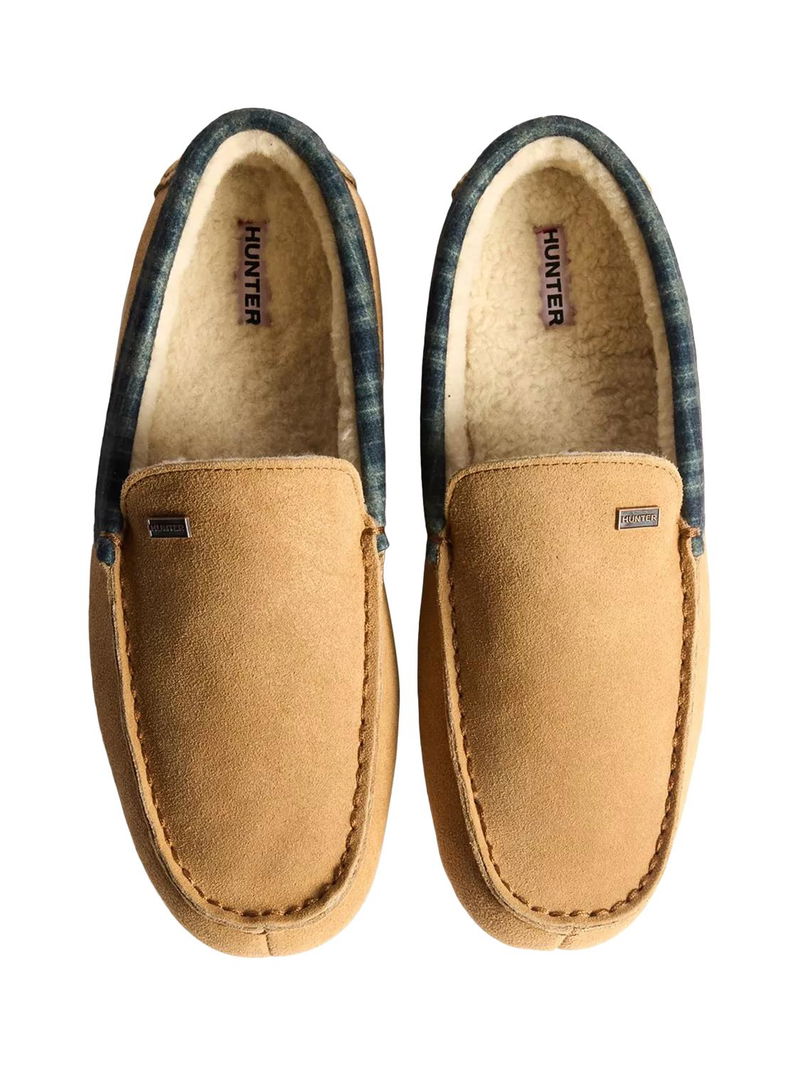 Comfort redefined - style you can lounge in. Discover Hunter's new range of indoor shoes, crafted for the moments that matter most - relaxing at home in complete comfort. The tartan collar brings heritage-inspired style and premium materials together in a cosy, wear-anywhere essential. A rich suede upper, accented by a classic tartan collar offers a timeless look with a modern feel. Underfoot, a durable 100% rubber outsole with a modern driver tread gives grip and stability, perfect for quick trips outside or moving around the house. Finishing touches like the branded metal trim and refined stitching elevate the design, making this slipper as stylish as it is comfortable.