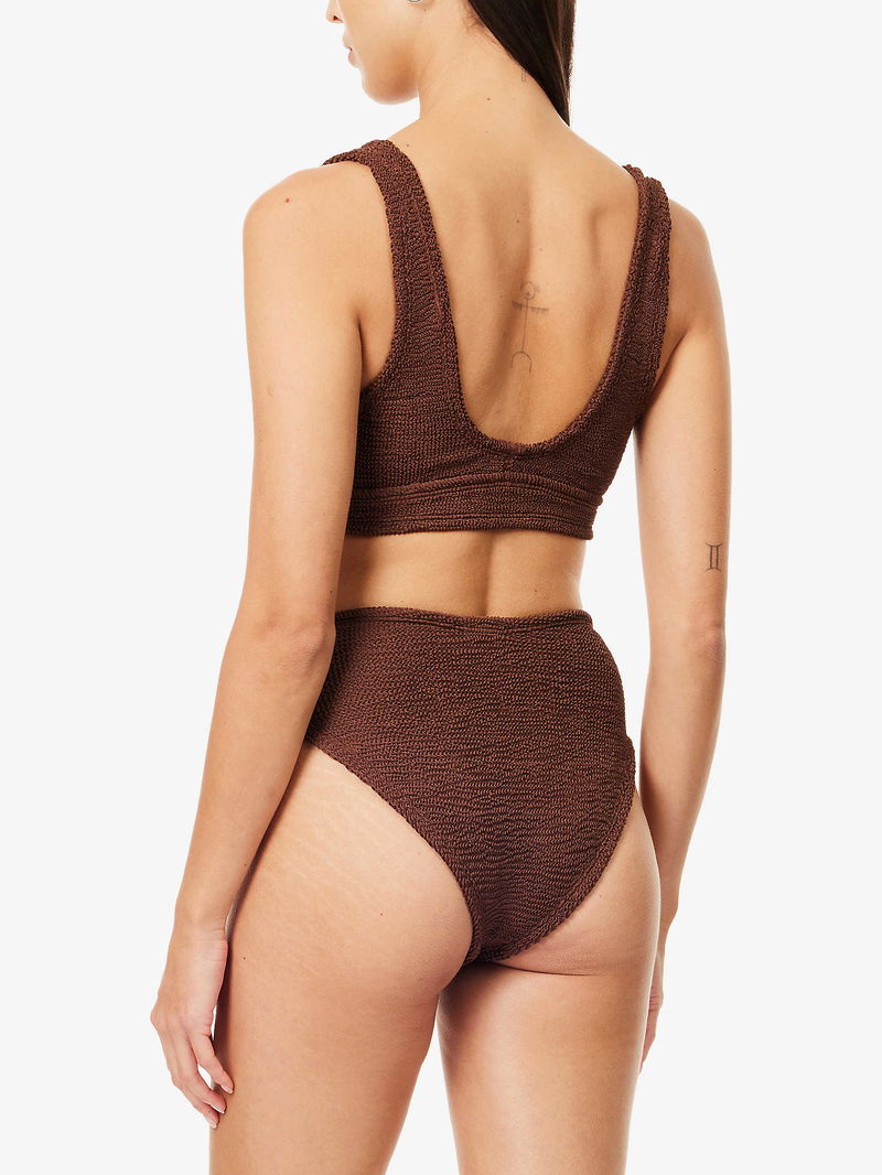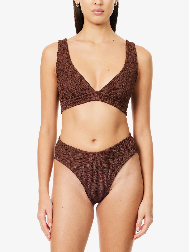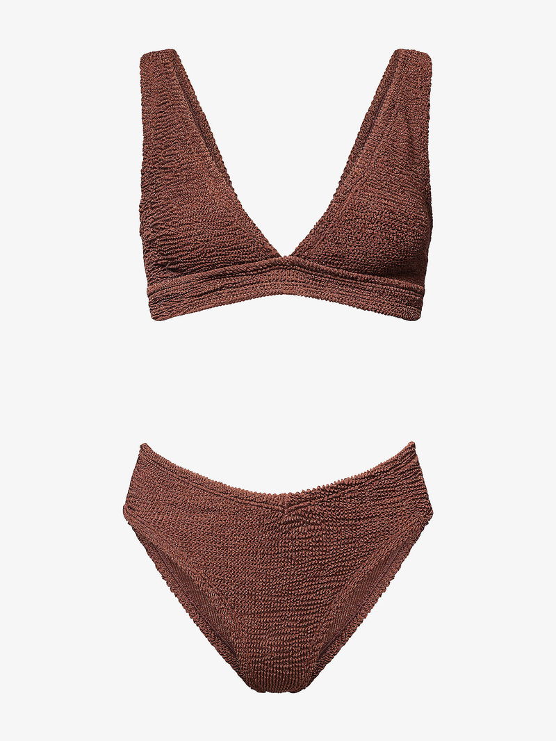 Hunza G channels retro glamour with a modern twist. From bikinis to figure-flattering one-pieces - in its iconic crinkle fabric - each piece radiates effortless chic. Embracing inclusivity and body positivity, expect timeless swimwear that's as comfortable as it is stylish.