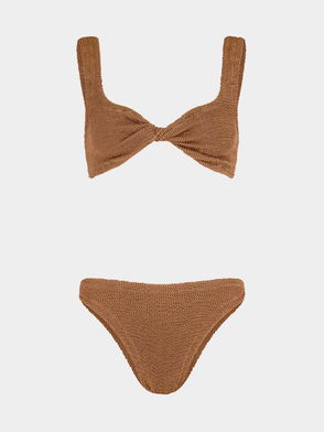 Support and style meet with Juno's twist detail top and bikini bottoms that can be worn high or low on the hip, now with deeper sides and more coverage and grip on the bum. The Coverage Collection . Some of the brand’s most iconic styles in your favourite colourways reworked in an exclusive capsule, exclusive to Hunza G. Designed with a little more material in them, these pieces are perfect whether you're looking for better bust support, more length in the body, or simply a little more coverage all-over.