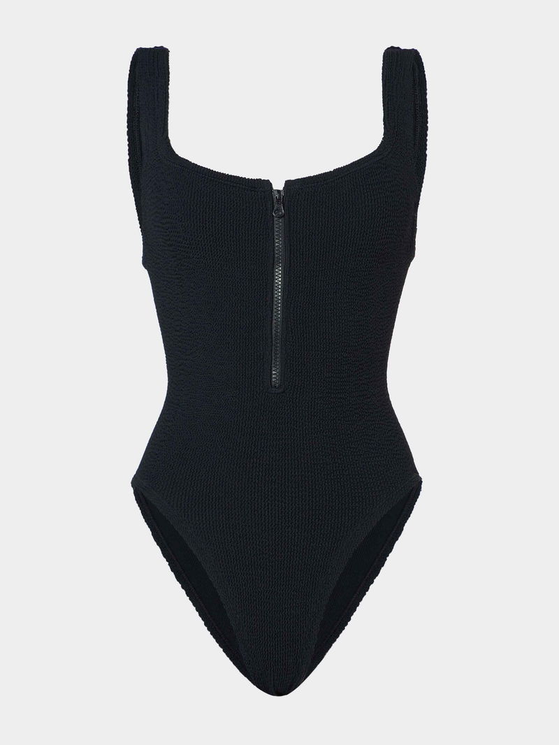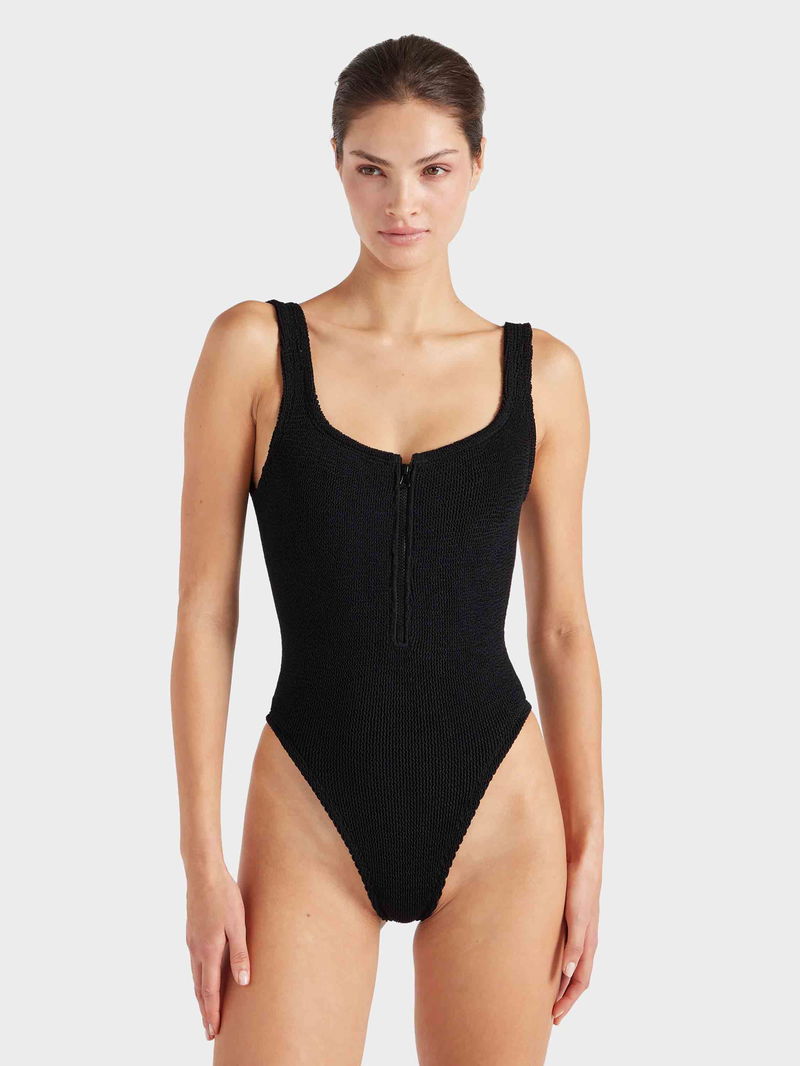 Brought back from the Hunza G 90s archives, the Dallas swim features a daring zip front, square neckline, and scooped back – in our iconic Original Crinkle™ fabrication.