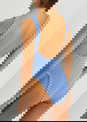 A brand favorite, the Domino swimsuit features a classic silhouette with a scoop neckline and low-cut back. This swimwear piece is made using Hunza G's Seamless Crinkle Technology, making it one-size-fits-all.