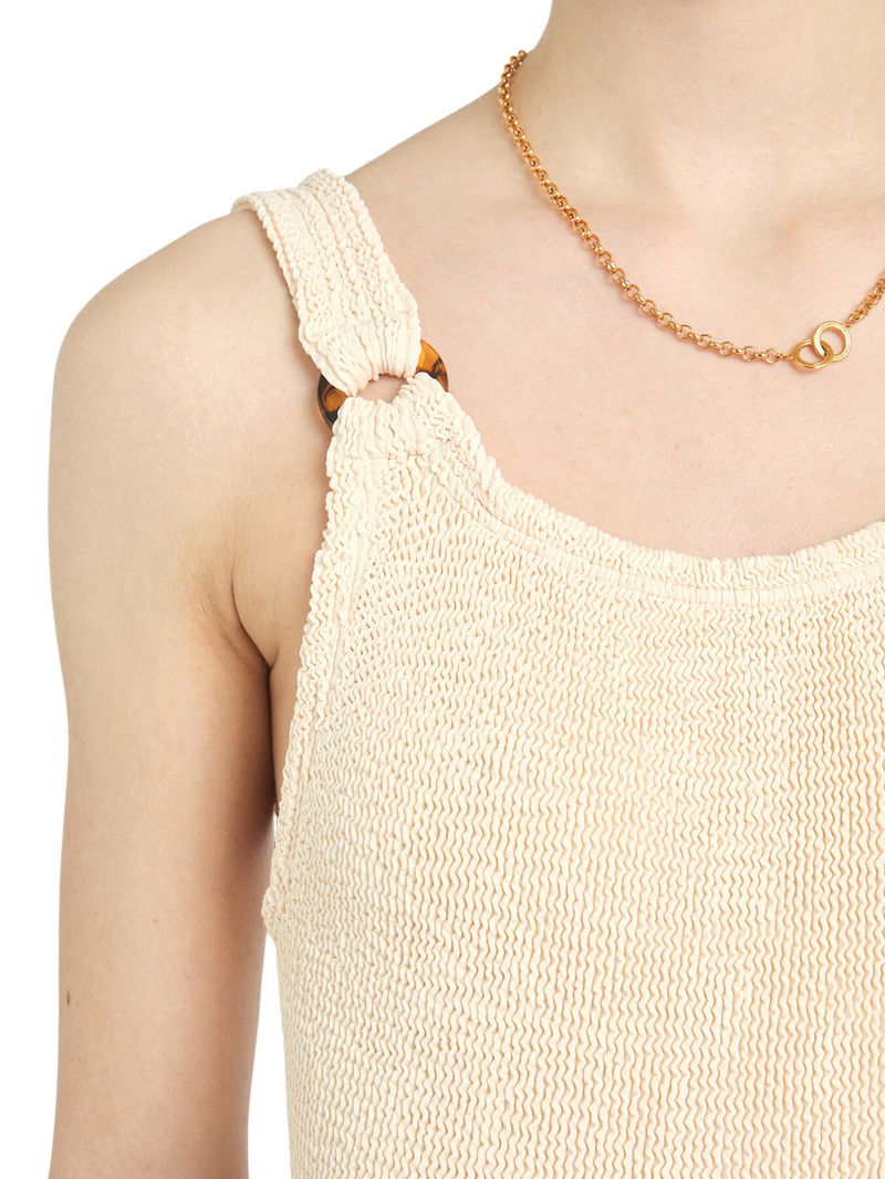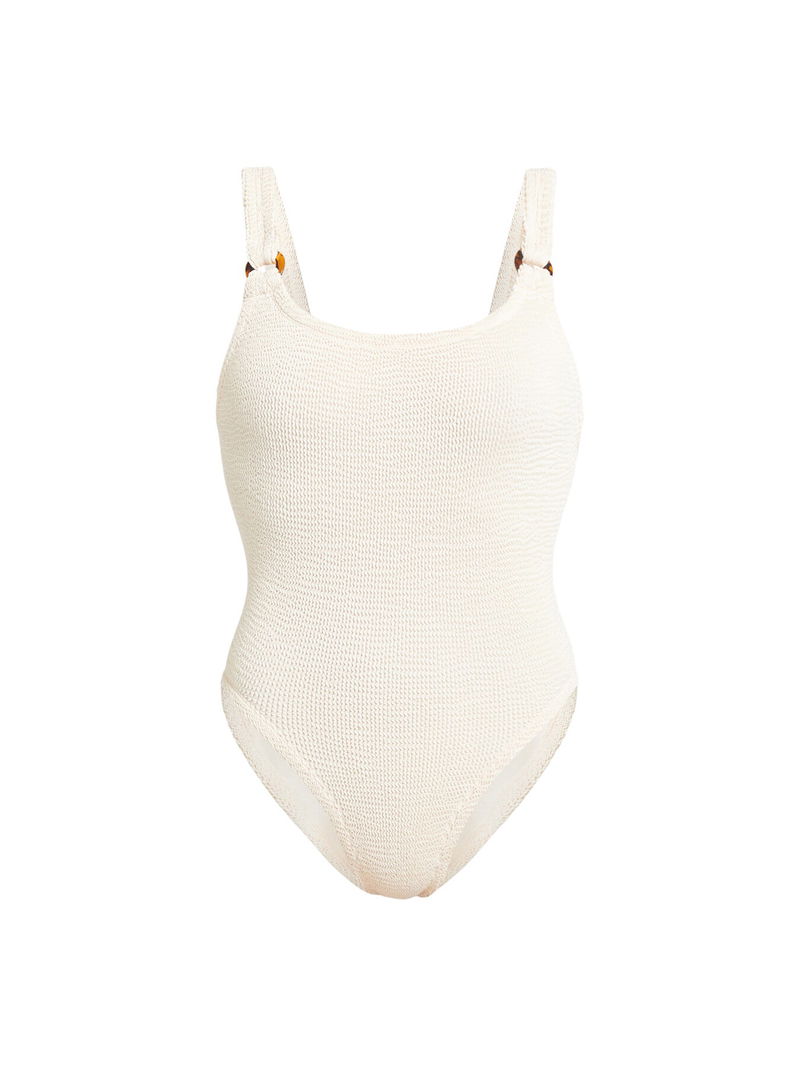 Hunza G’s elevated approach to swimwear has solidified the brand as a cult phenomenon – and with pieces like the Domino swimsuit, it’s not hard to see why. Made from the label’s signature crinkle material – which ensures comfort is prioritised with every wear – this number features tortoiseshell hoops to the strap, confirming its sophisticated appeal.