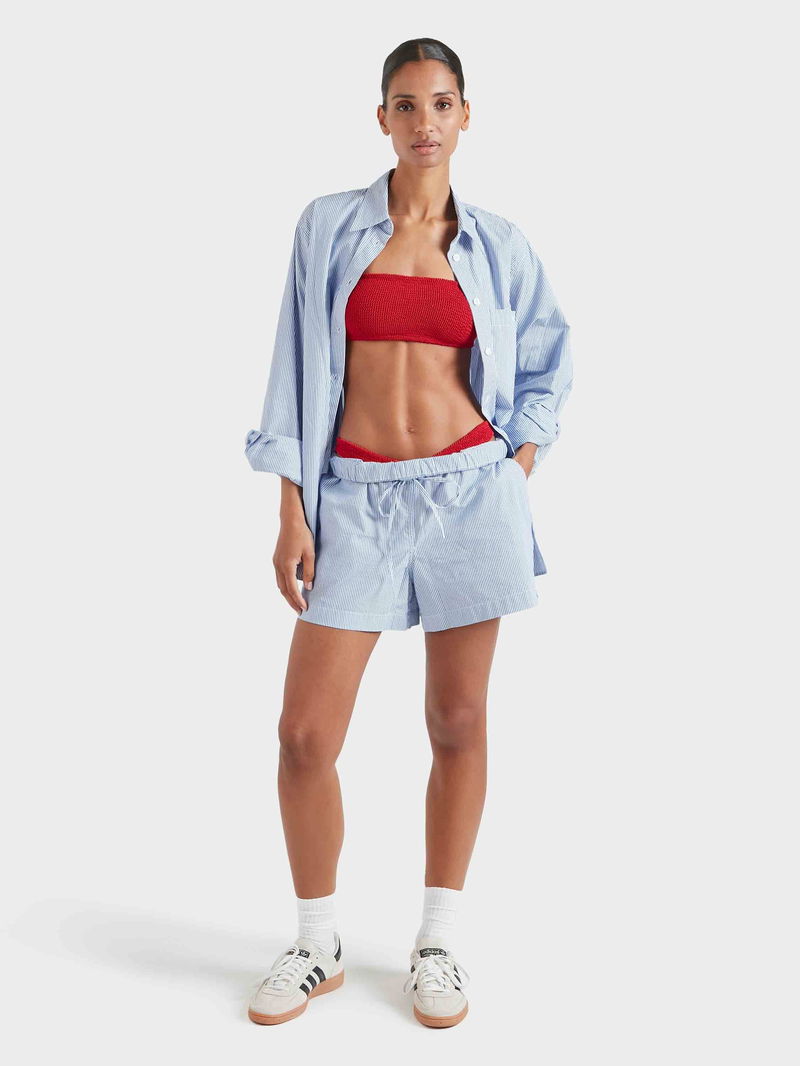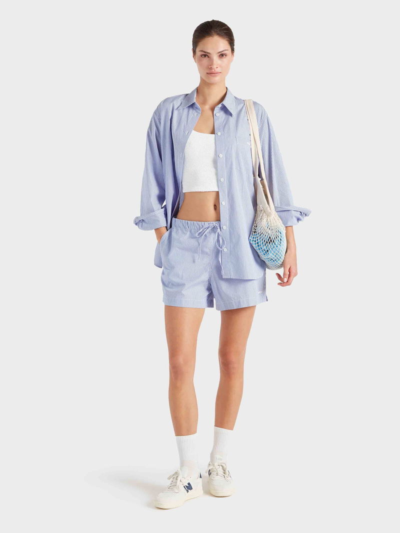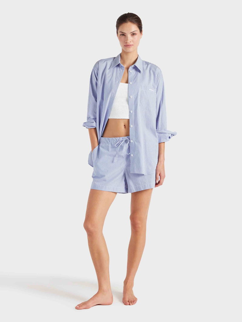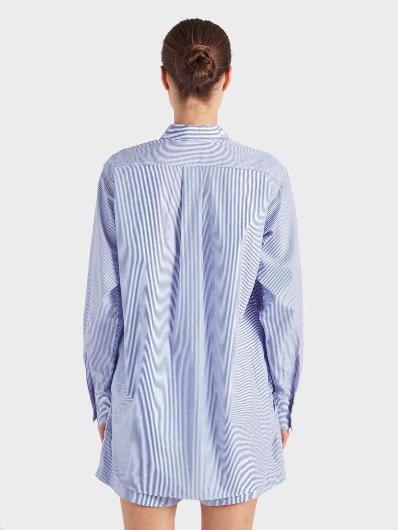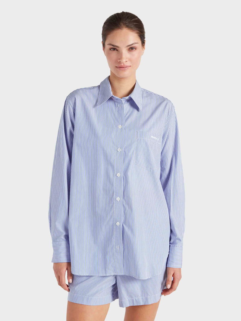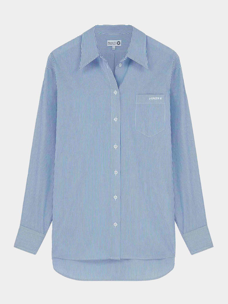 Easy, versatile, effortless. Pure cotton poplin shirt with branded buttons, a relaxed fit and the brand’s signature logo embroidered on the pocket. Made to wear as a beach cover-up, weekend loungewear, relaxed evening dressing, and more.