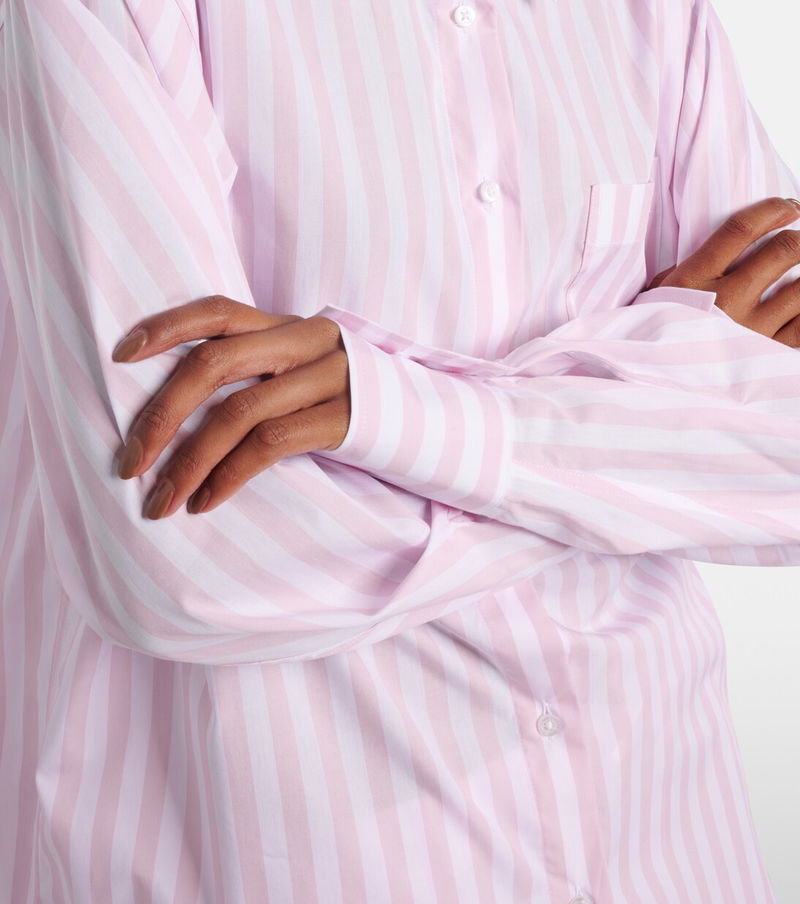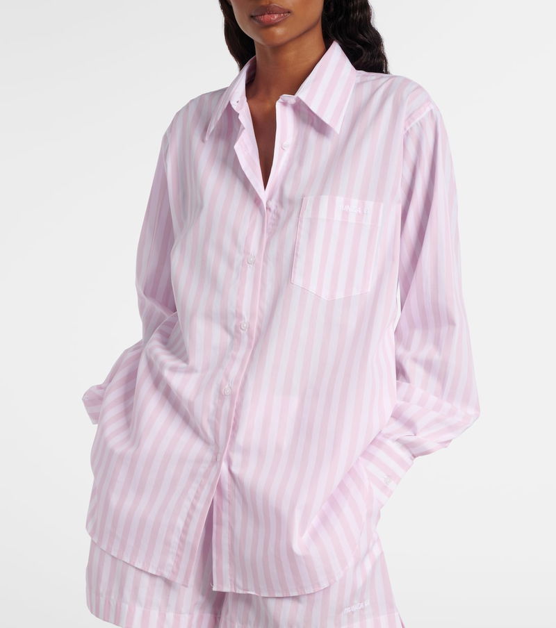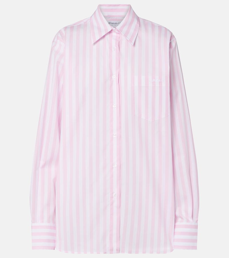 Hunza G introduces this striped cotton poplin shirt with an embroidered logo, a classic collar, and a buttoned front. Crisp yet relaxed, the piece is designed for effortless layering and easy everyday style.