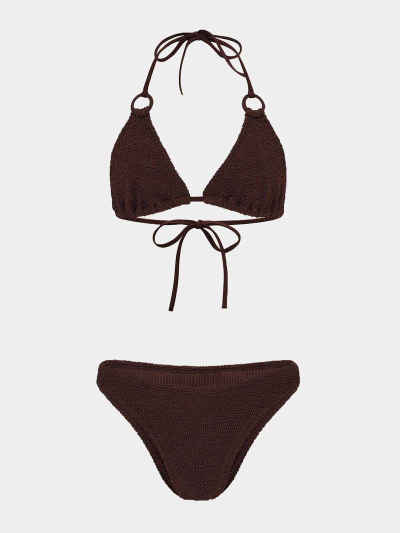 Just add hoops. Eva is an elevated take on the classic triangle bikini, with tonal hoop detailing and adjustable ties so you can create your perfect fit.