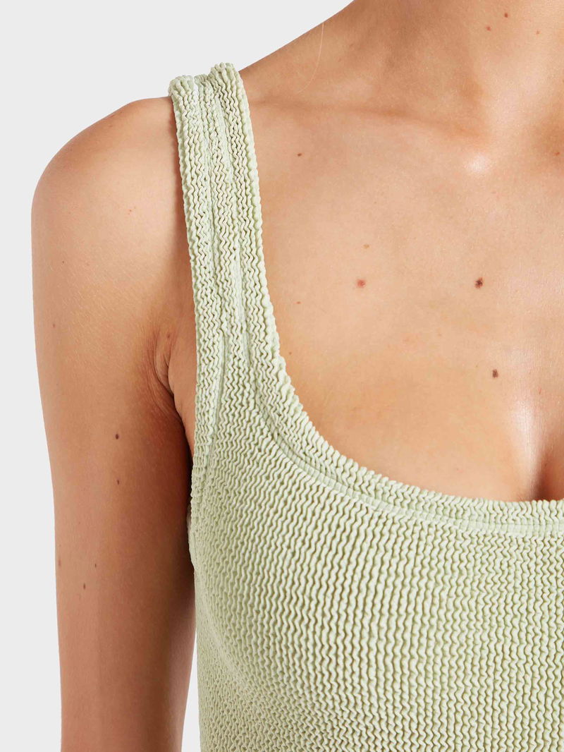 A limited-edition square neck, designed exclusively for Fouquet’s New York. Made from our signature Original Crinkle™ fabrication in sage to complement the hotel’s interior colour palette.