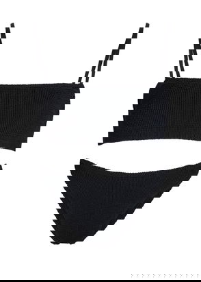 Hunza G's swimwear has been spotted on so many incredible (and not to mention stylish) women, including Hailey Bieber, Rosie Huntington-Whiteley and Lily Aldridge. This 'Gigi' bikini is made from emerald seersucker. The top has a slightly sporty shape, while the briefs are cut high like two-pieces from the '80s and '90s.