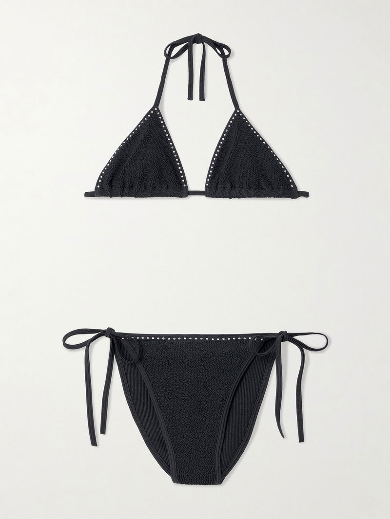 Gina Swarovski Crystal-embellished Seersucker Bikini