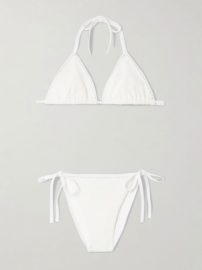 Hunza G's 'Gina' bikini is hand-embellished with rows of Swarovski crystals for a touch of sparkle.