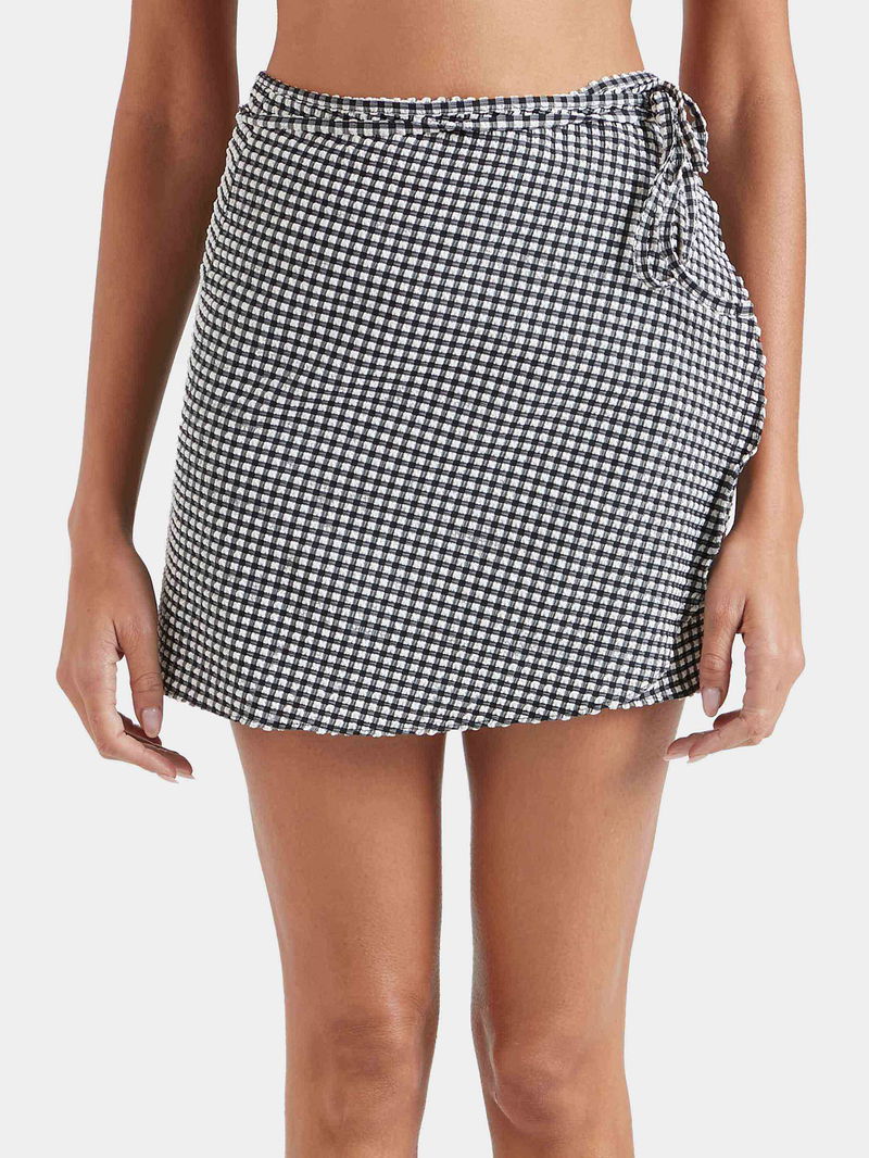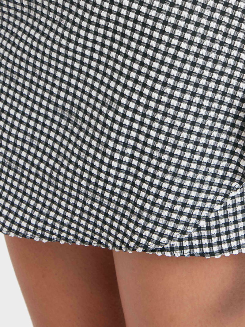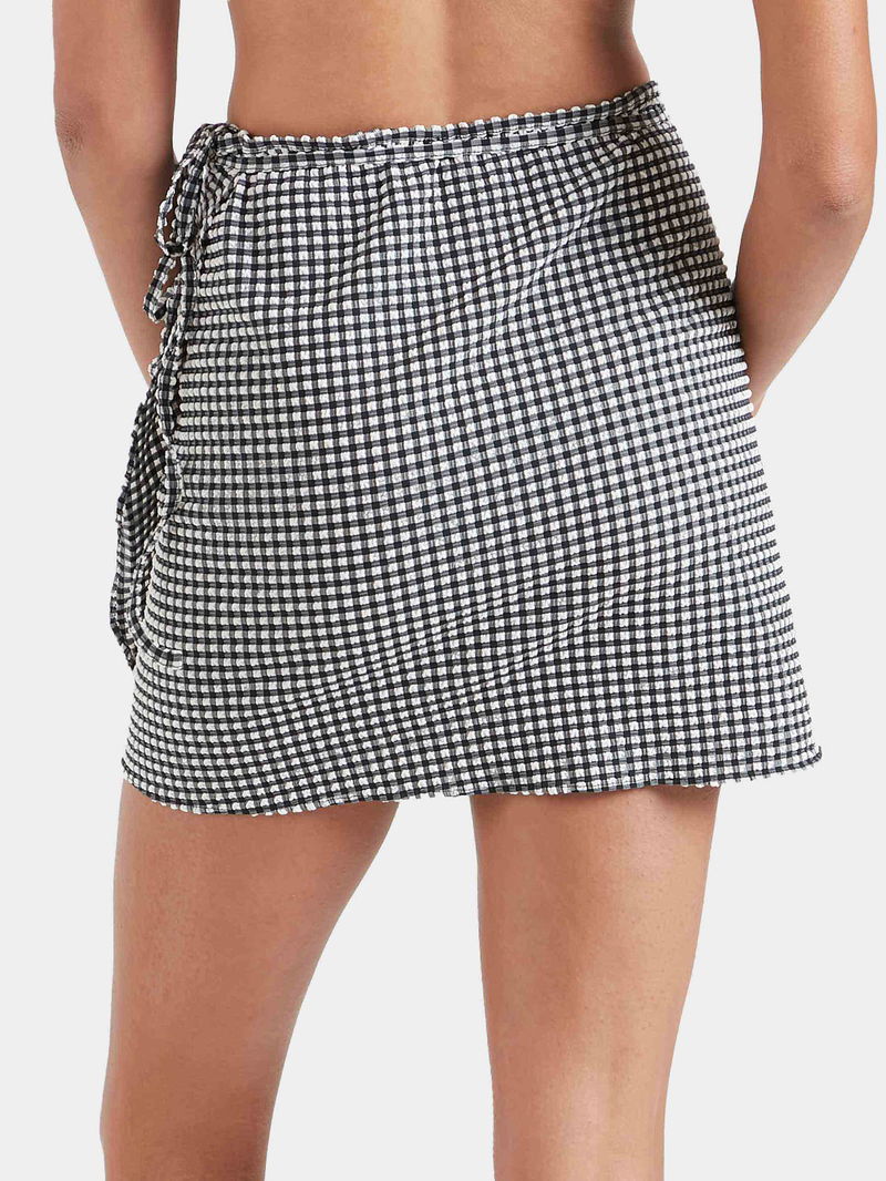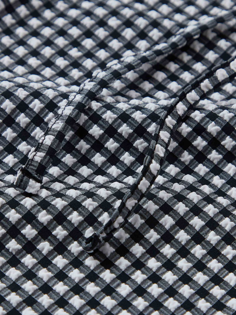 This technical beach cover-up is as versatile as it is chic. The mini sarong is fabricated from ultra-lightweight, quick-drying, woven bi-stretch seersucker gingham. Featuring a classic wrap-around design and adjustable tie-waist for a personalised fit.