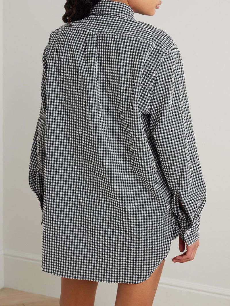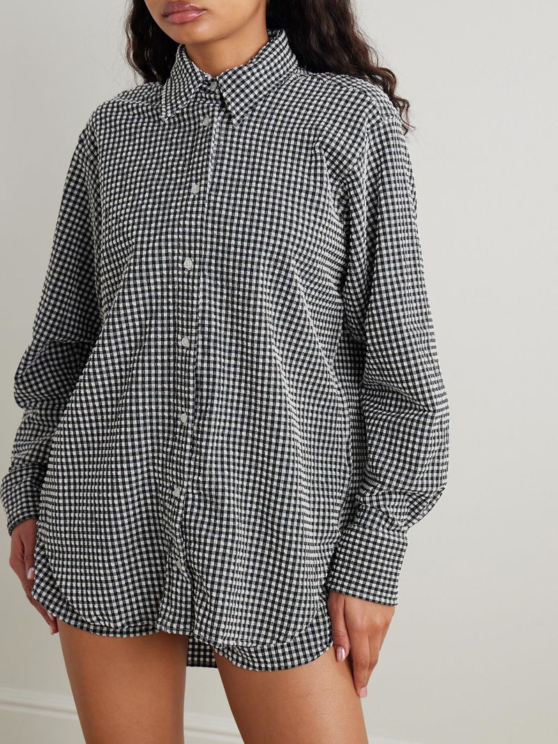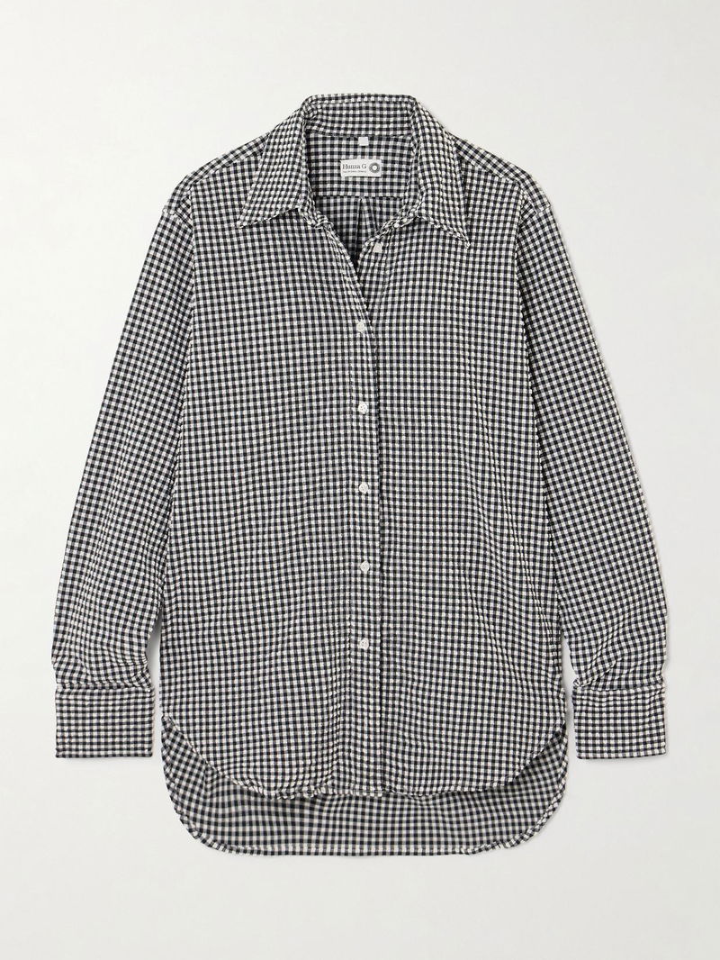 Hunza G's shirt has a loose, longline fit that will effortlessly flow over the label's swimwear. Made from gingham seersucker, it's cut with a classic collar and stepped hem. Wear yours with denim shorts or linen pants when you leave the beach.
